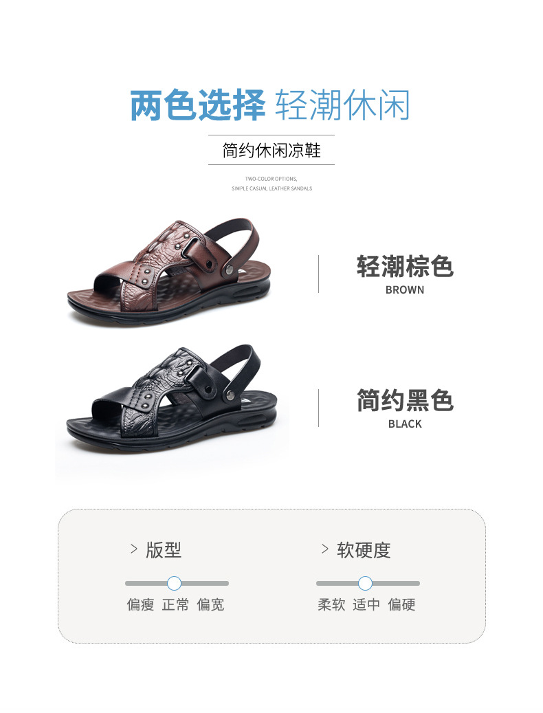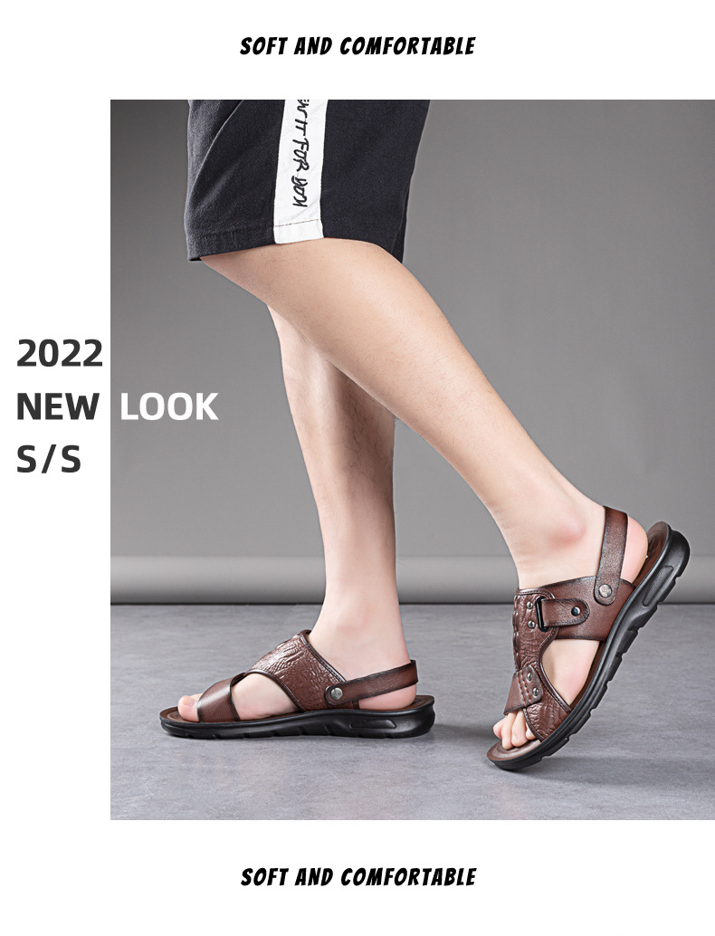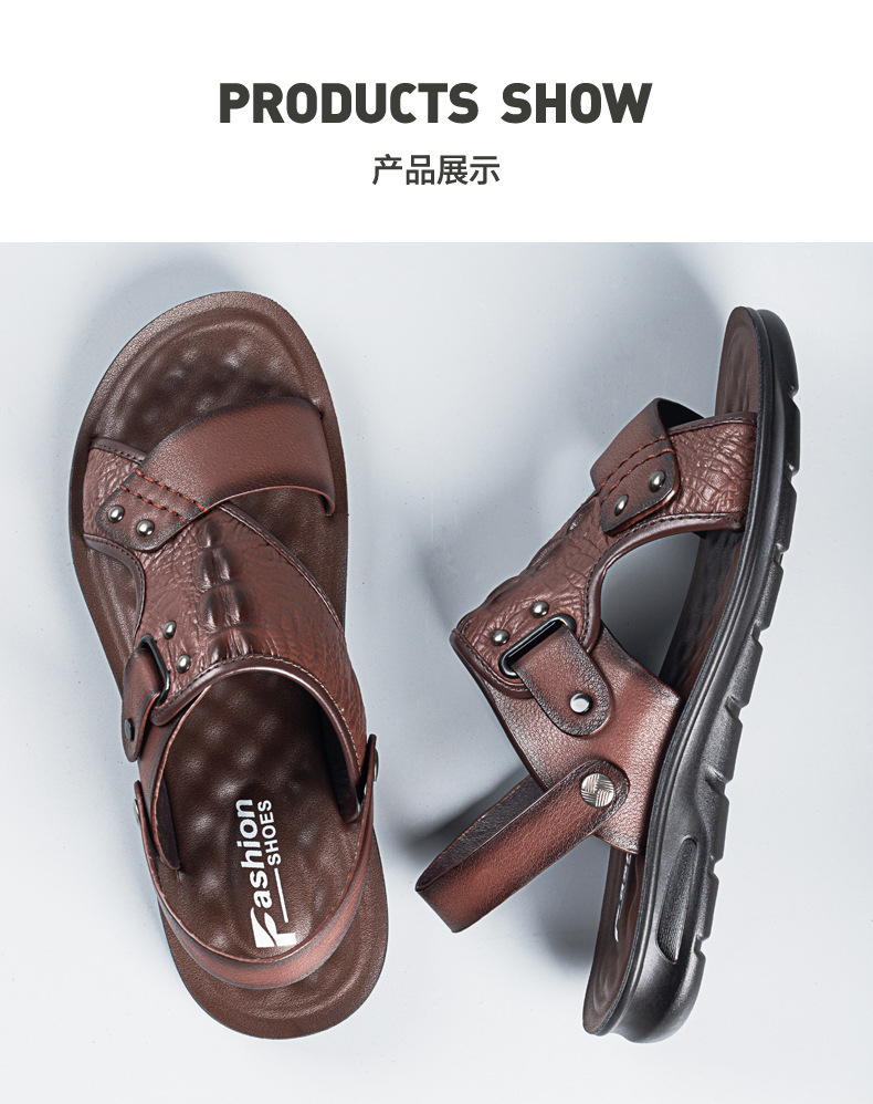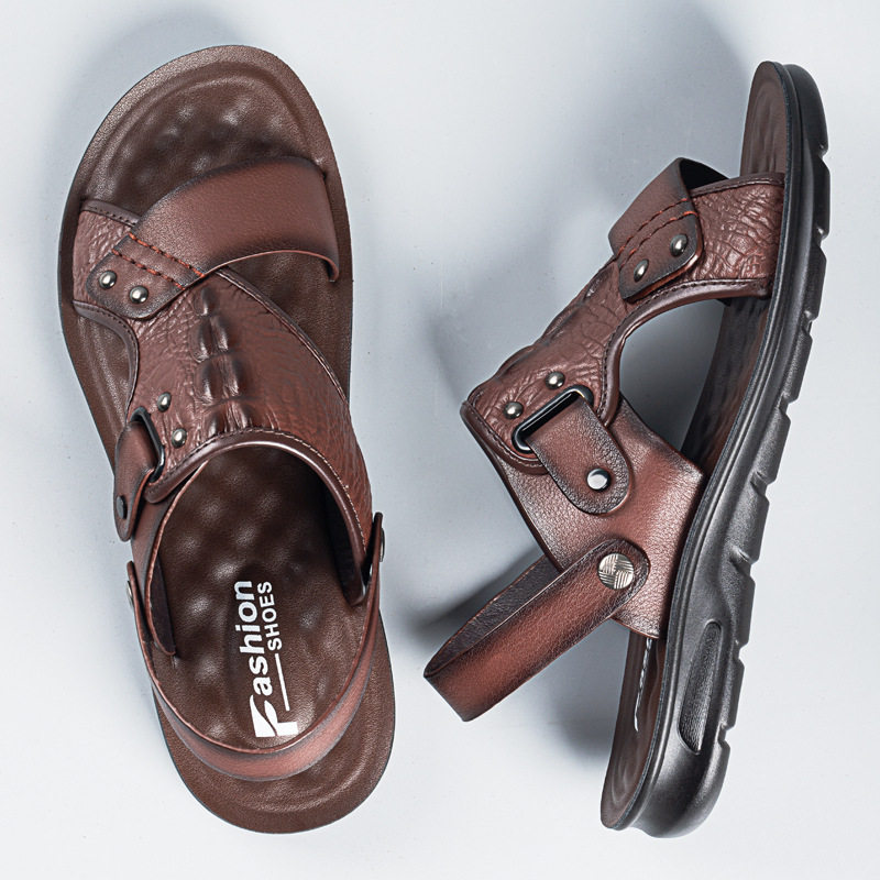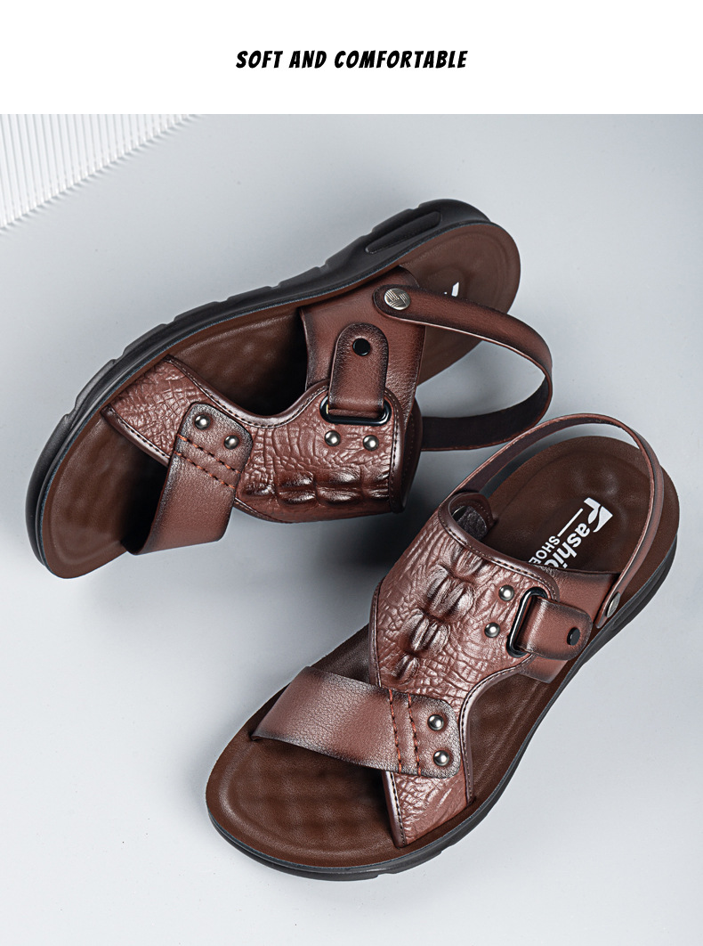 Сандалии, мужская пляжная пляжная обувь, тапочки, коллекция 2023, для среднего возраста, крокодиловый принт, из натуральной кожи, мягкая подошва