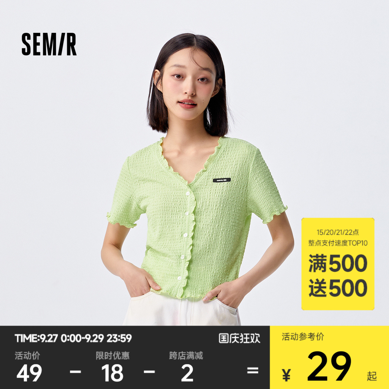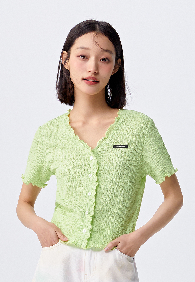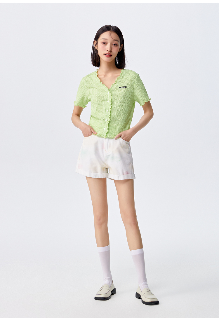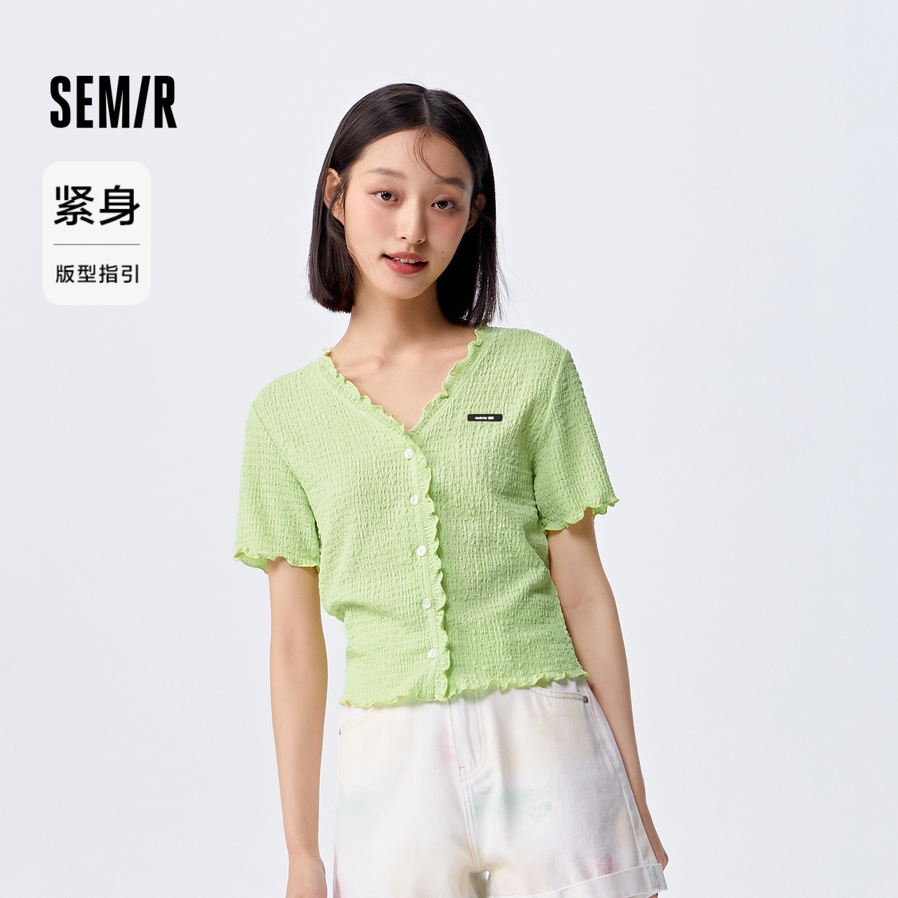 Semir, короткая футболка с коротким рукавом, летний кардиган, в обтяжку, V-образный вырез