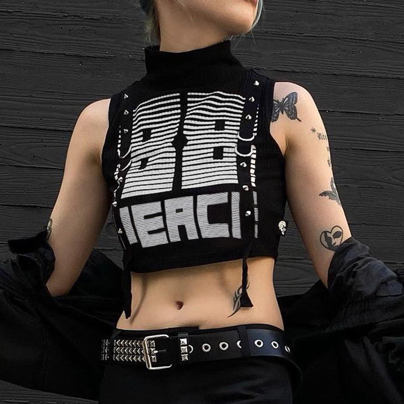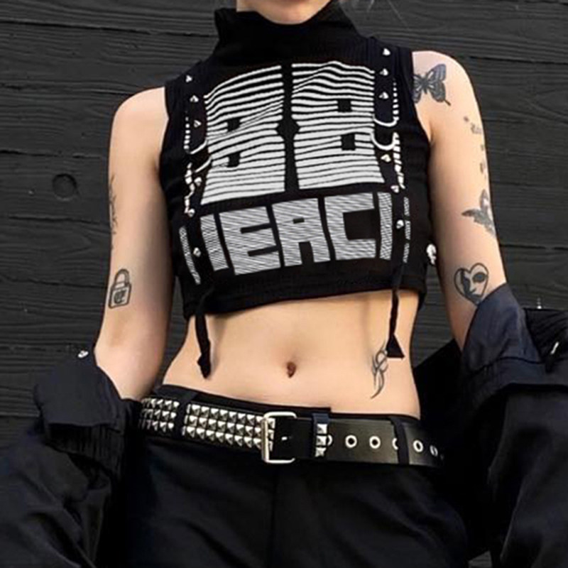 WEEKEEP Танцующий жилет без рукавов, в стиле панк, высокий воротник