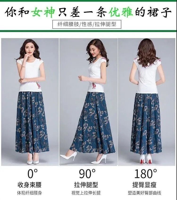 Летняя шелковая юбка, длинный универсальный ростомер, в цветочек, высокая талия, большой размер, длина макси, подходит для подростков