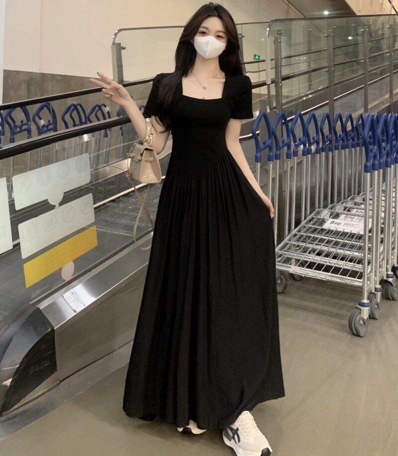 Приталенное платье, летняя длинная юбка, большой размер, французский стиль, квадратный вырез