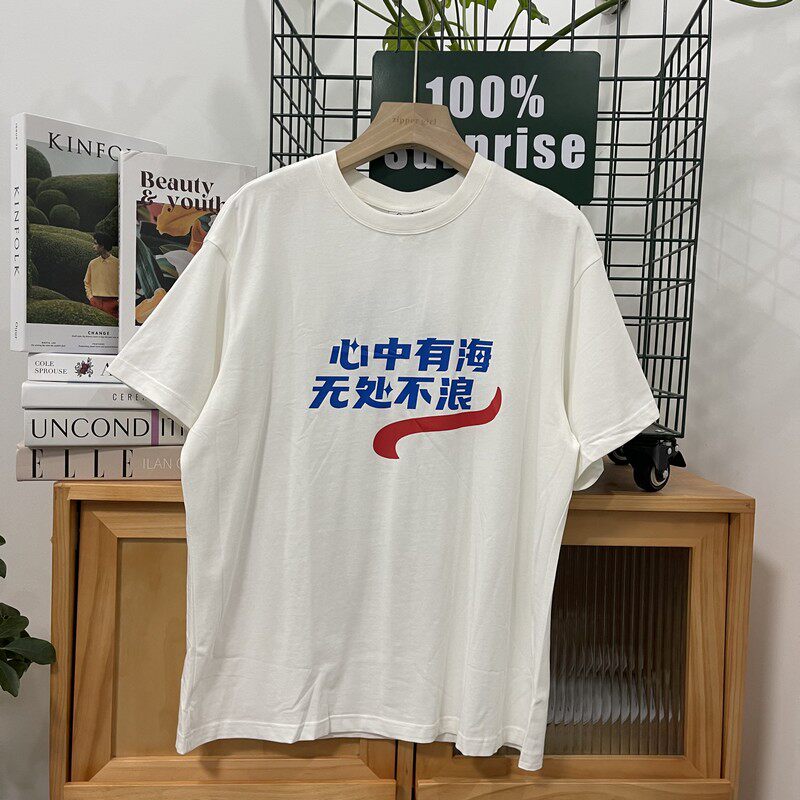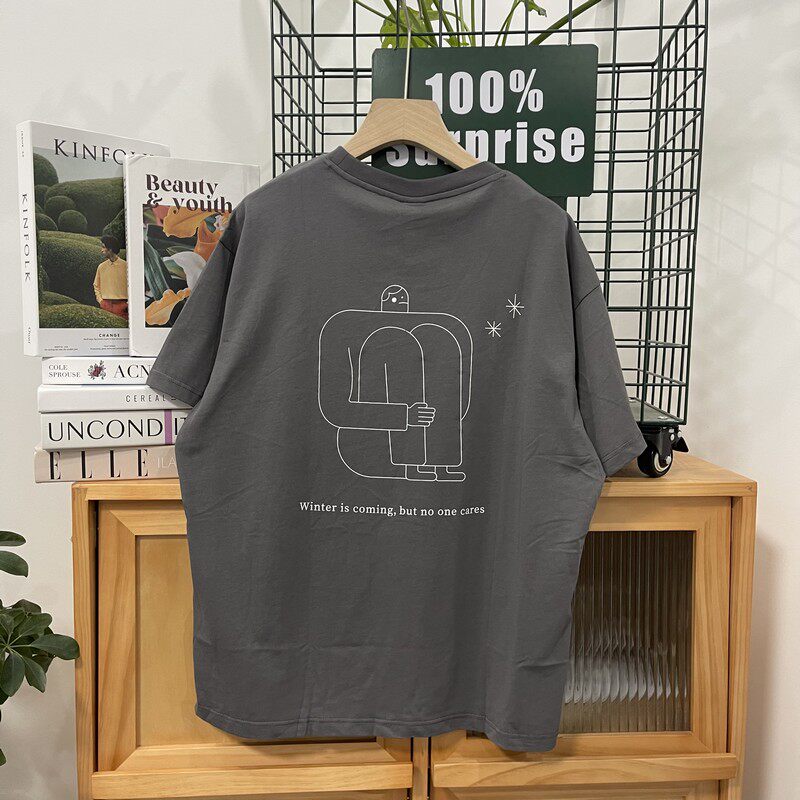 Хлопковая креативная футболка подходит для мужчин и женщин с круглым воротником, комплект, для влюбленных, оверсайз