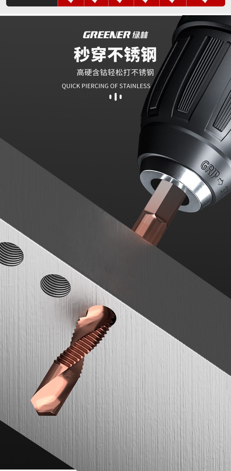 Бурение зеленого леса и постукивание встроенного винта с защелкой, бурная машина для постукивания винта с самого самоуничивания из нержавеющей стали.
