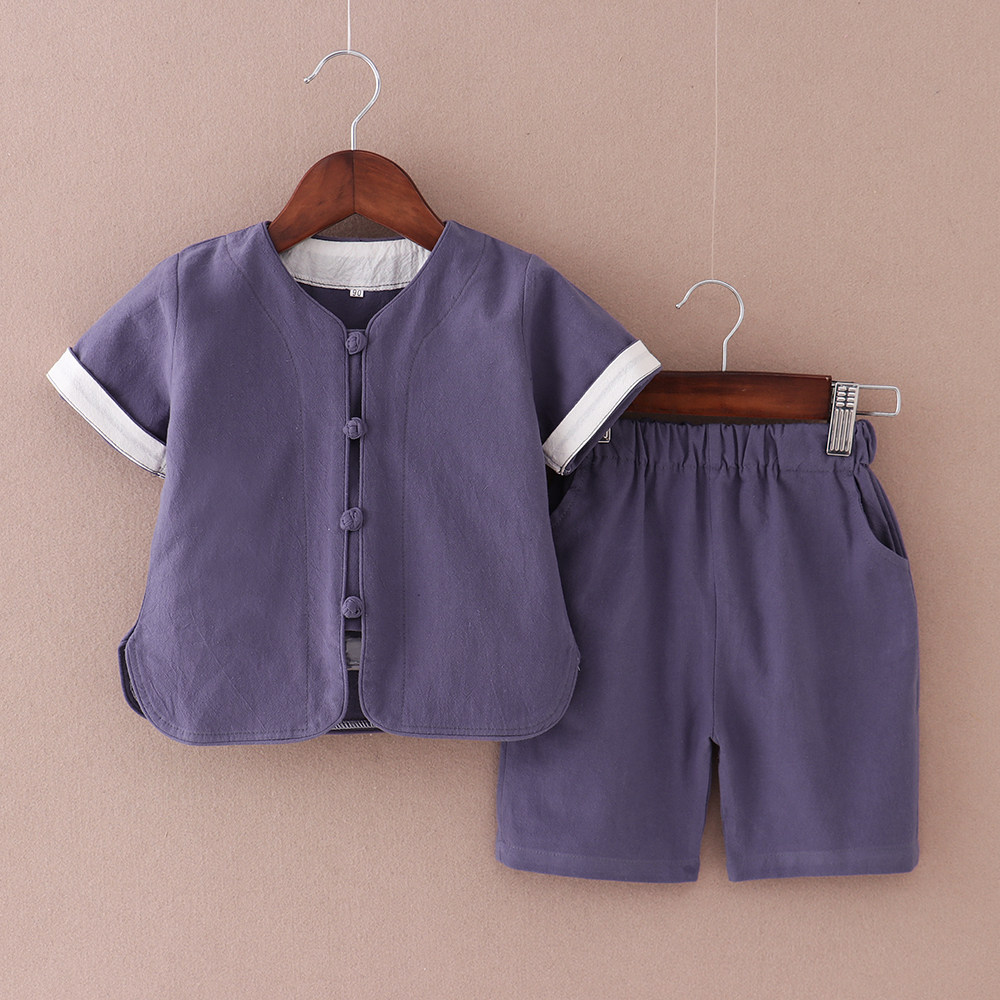 Ханьфу для мальчиков, ретро детский летний тонкий комплект, из хлопка и льна, китайский стиль