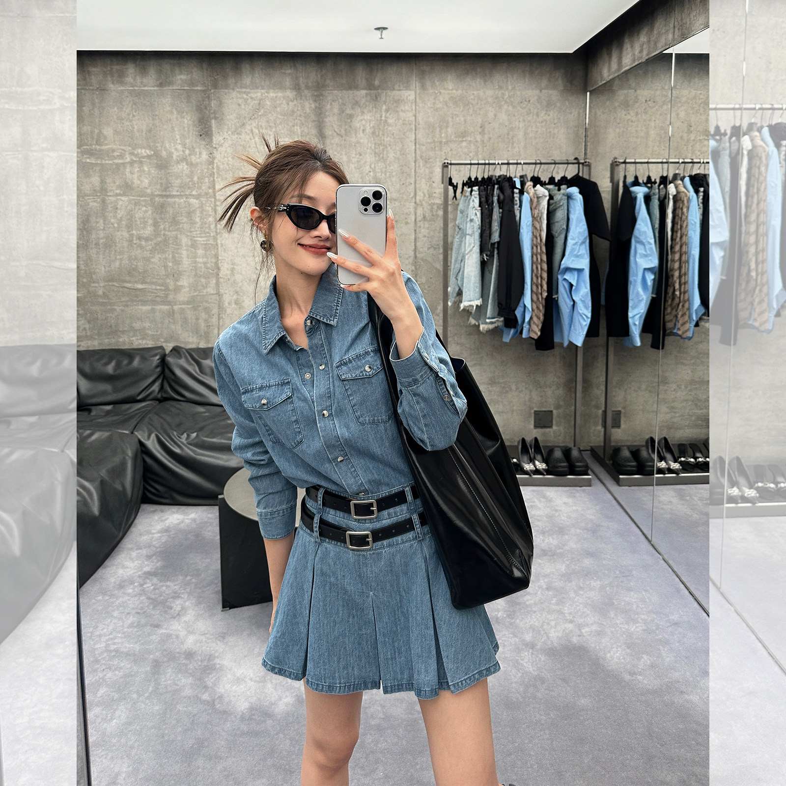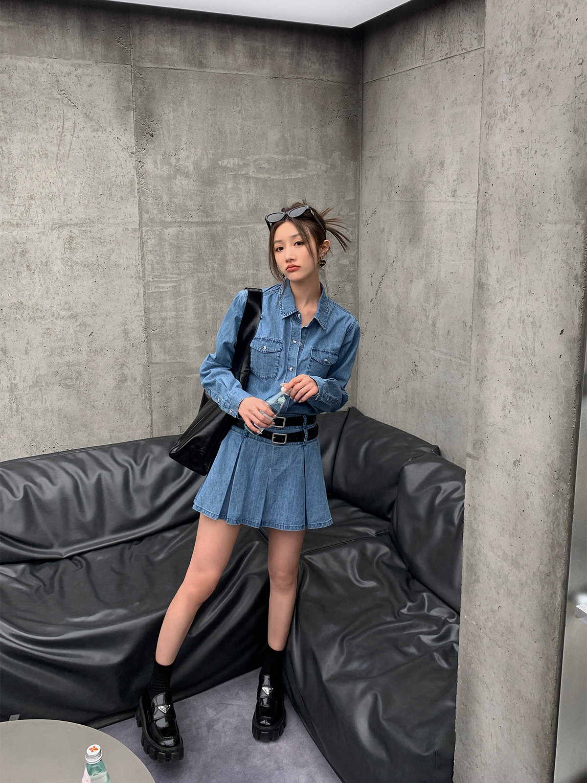 Весенний комплект, легкая и тонкая рубашка, мини-юбка