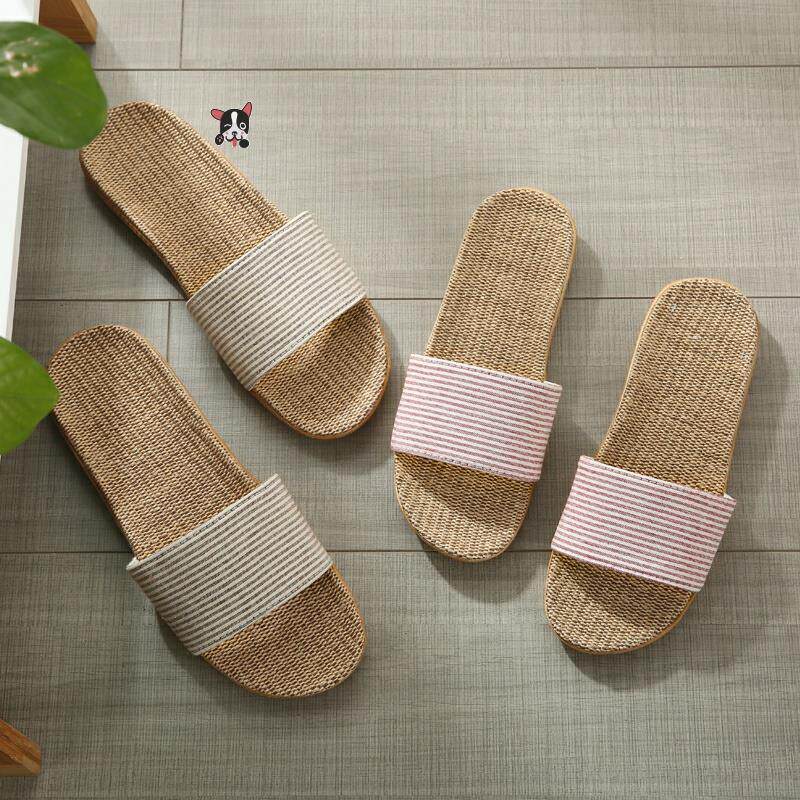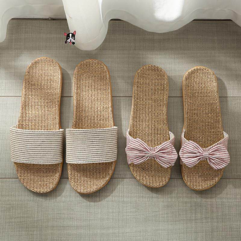 Слайдеры, летние соломенные нескользящие тапочки подходит для мужчин и женщин для влюбленных, из хлопка и льна