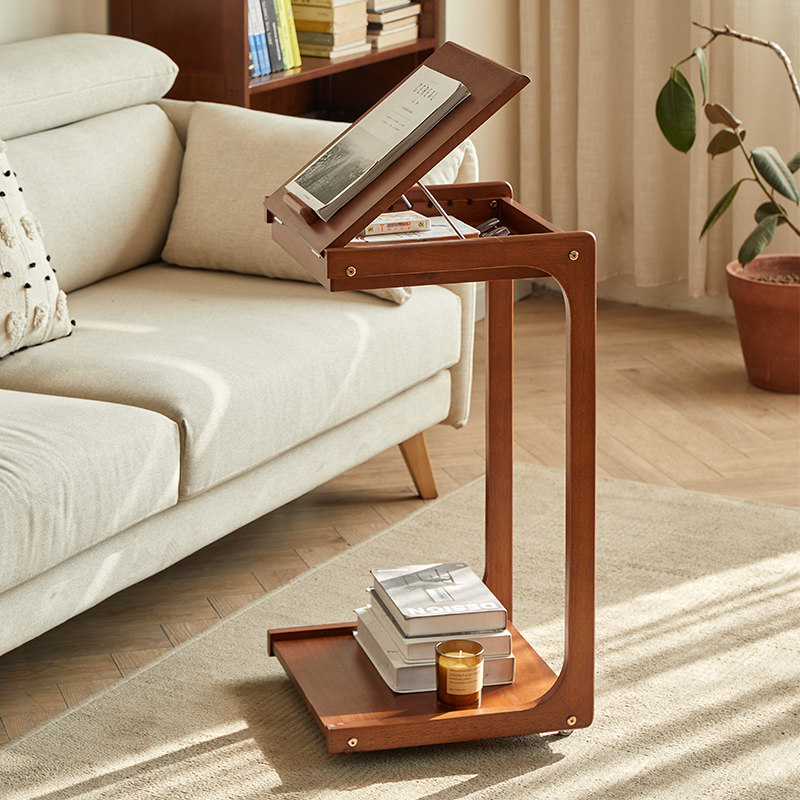 Откидной столик из цельного дерева, журнальный столик для гостиной, диван, столик на колесах, съемный небольшой столик, прикроватный столик, подставка для чтения