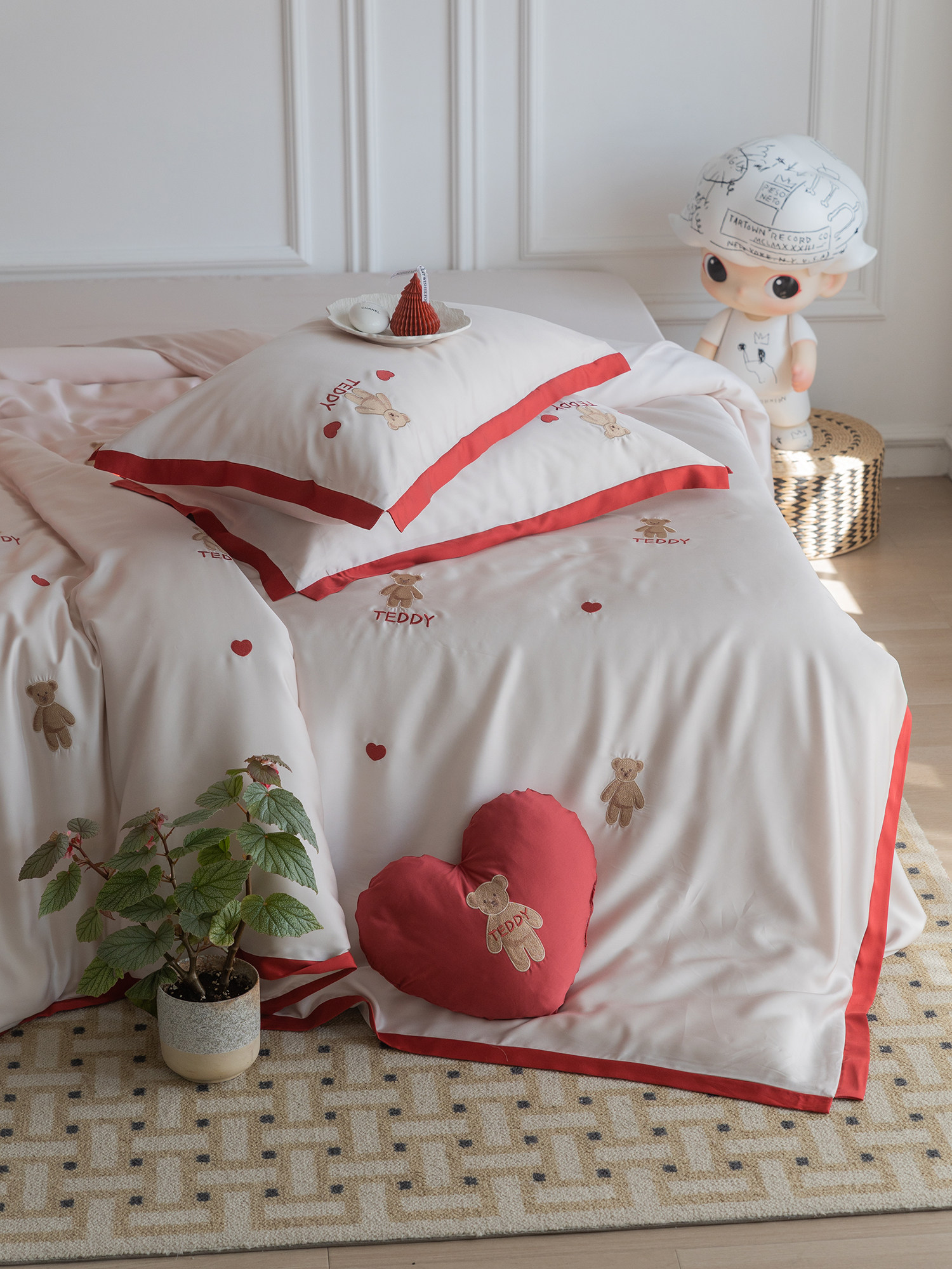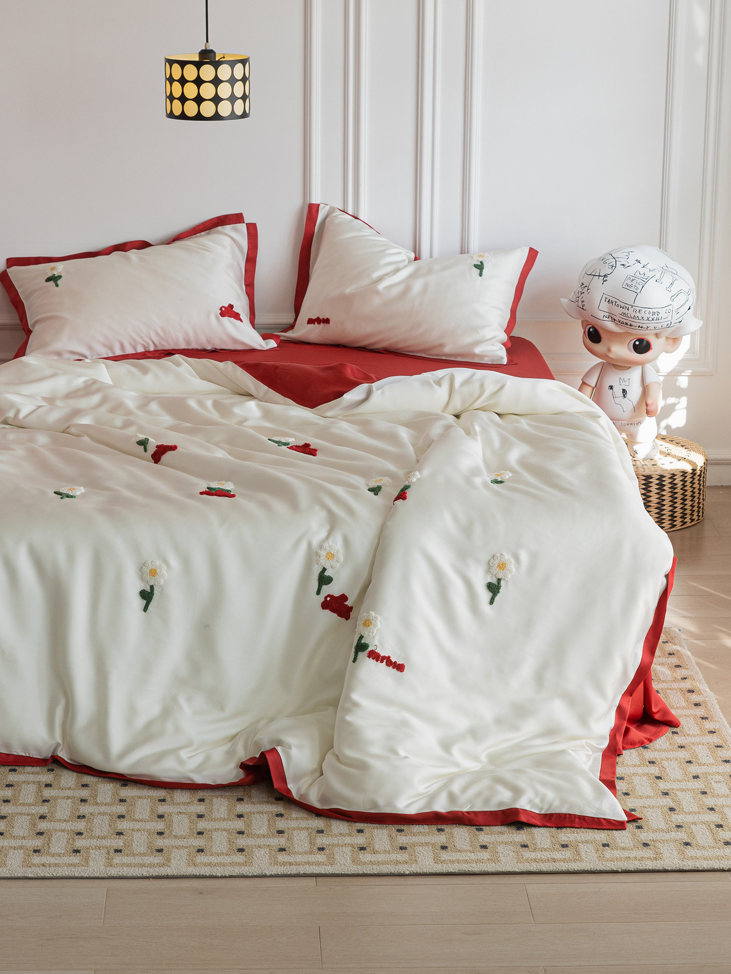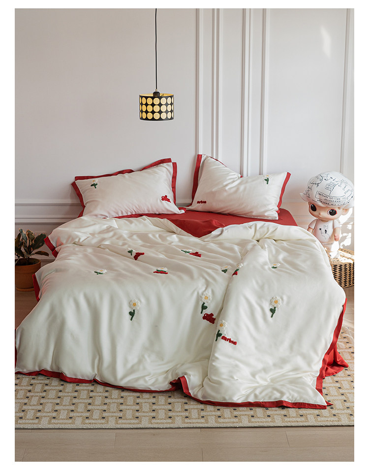 Милая подушка, двусторонний комплект для обучения математике, шелковая летняя простыня, покрывало, с вышивкой, 4 предмета