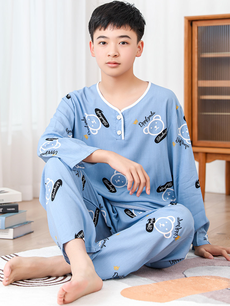 Пижама для мальчиков, лонгслив, осенний комплект для школьников, подходит для подростков, для средней школы