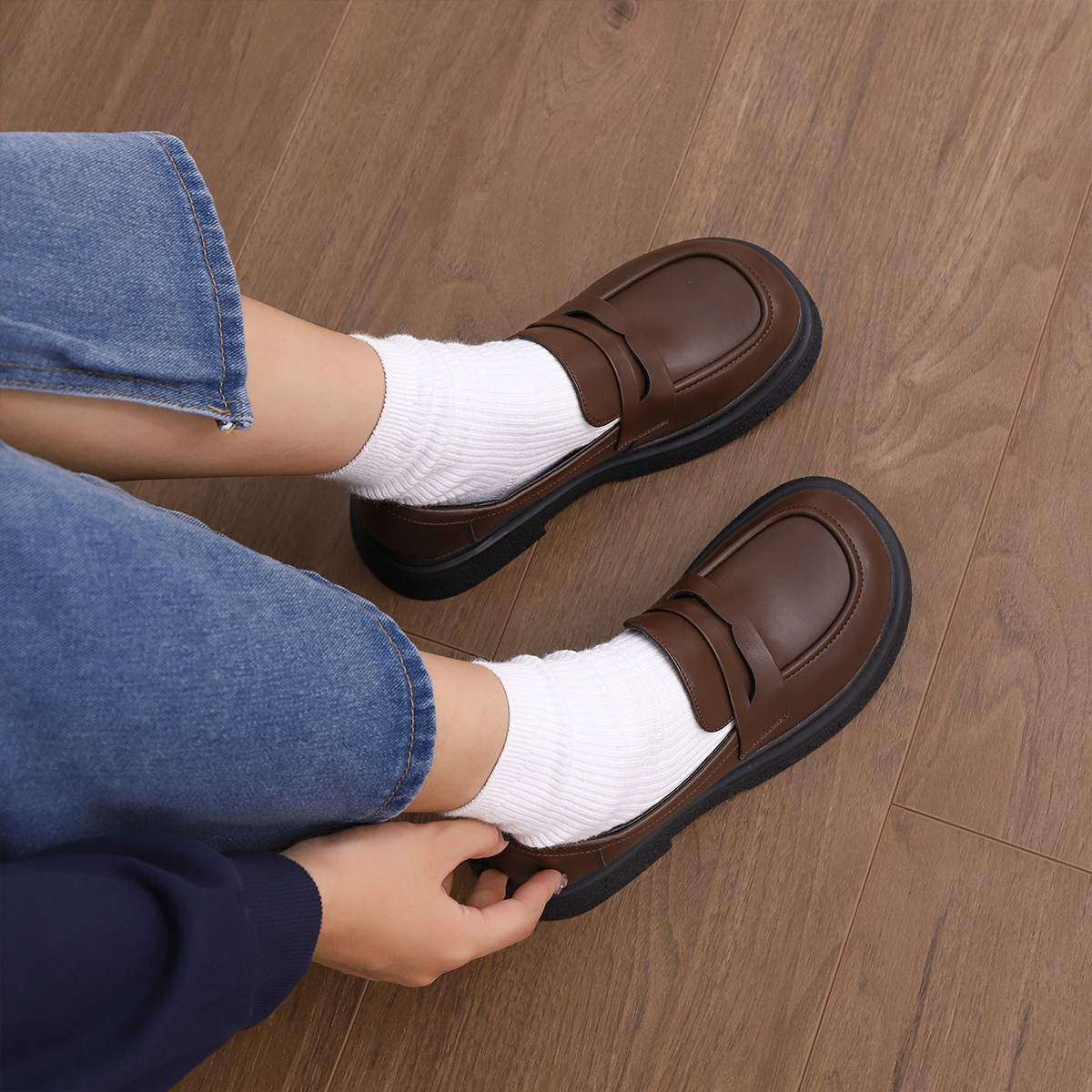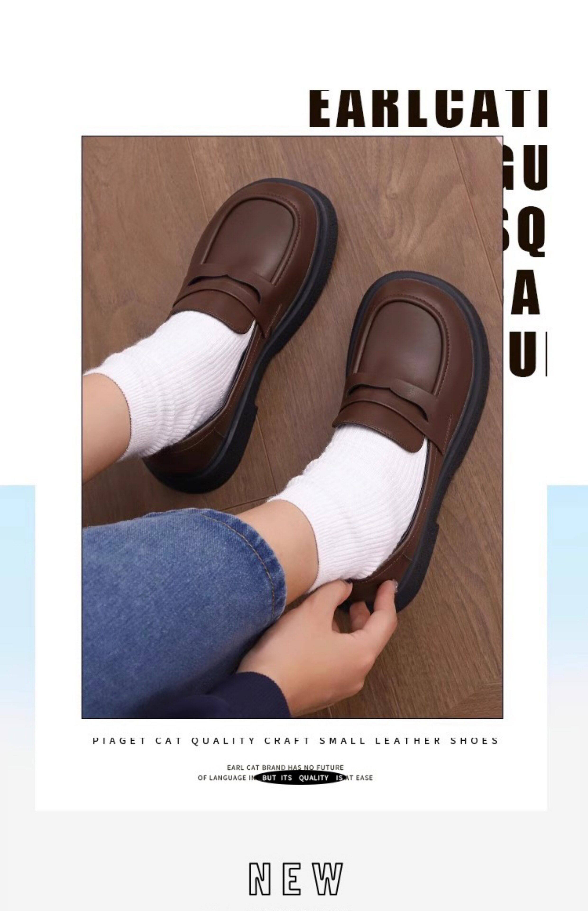 伯爵猫 Обувь для кожаной обуви, осенняя студенческая юбка в складку, лоферы, из натуральной кожи