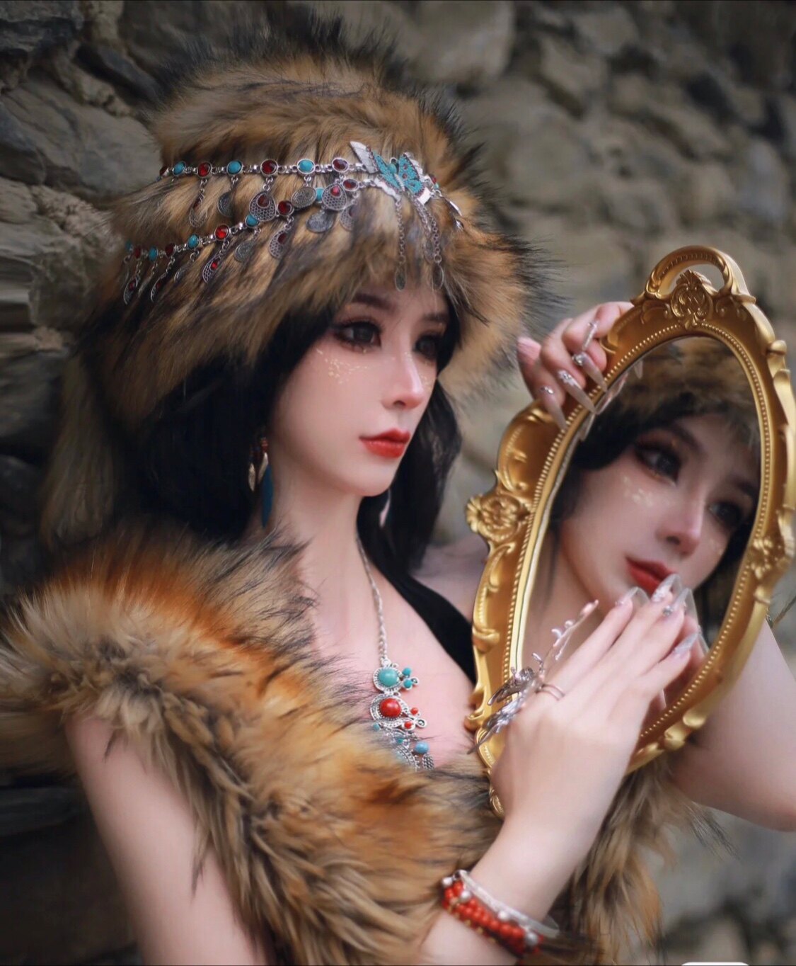 Экзотическое сокровище племени принцесса одежда дикий этнический ветровый мех подписанный на животе ювелирные изделия для танцев Юннан