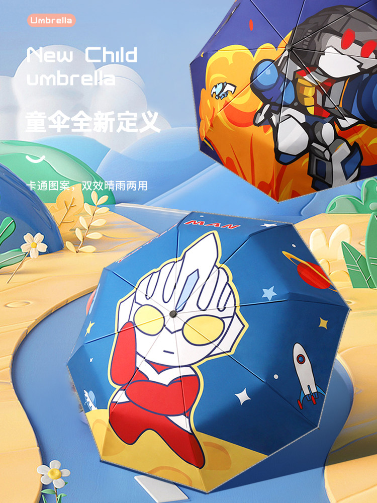 Ultra, Ультрамен Тига, автоматический безопасный складной зонтик для школьников для мальчиков