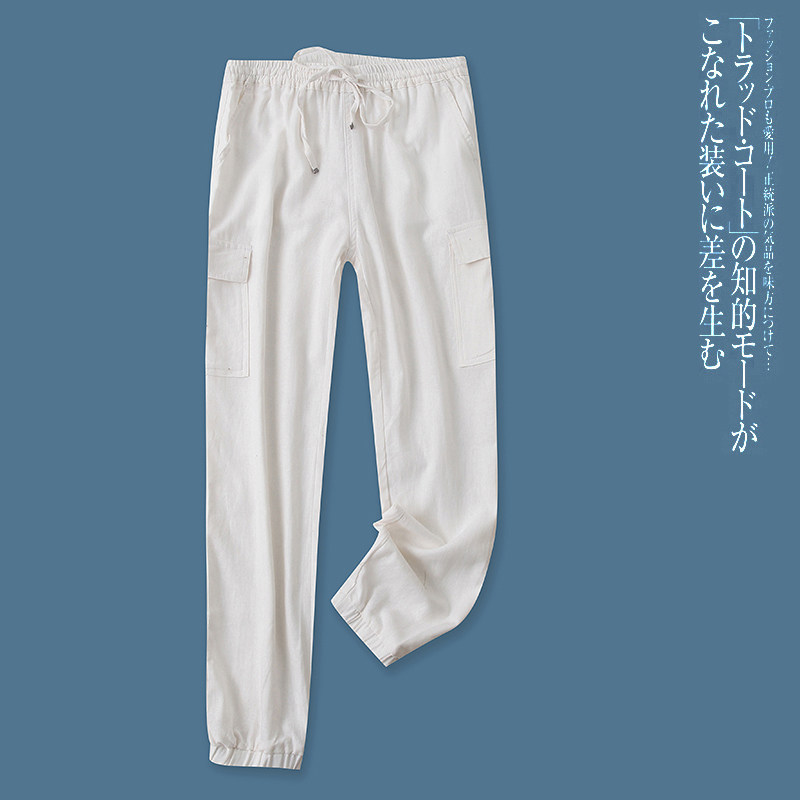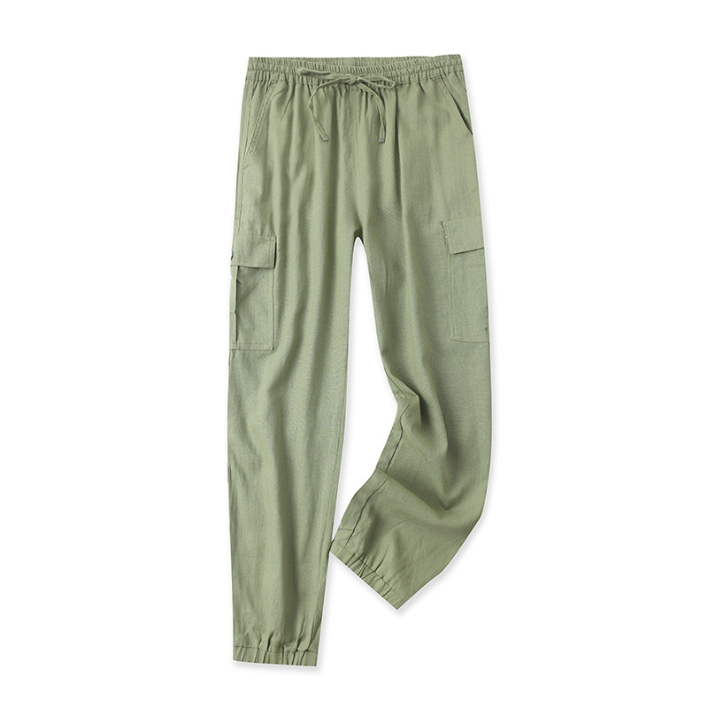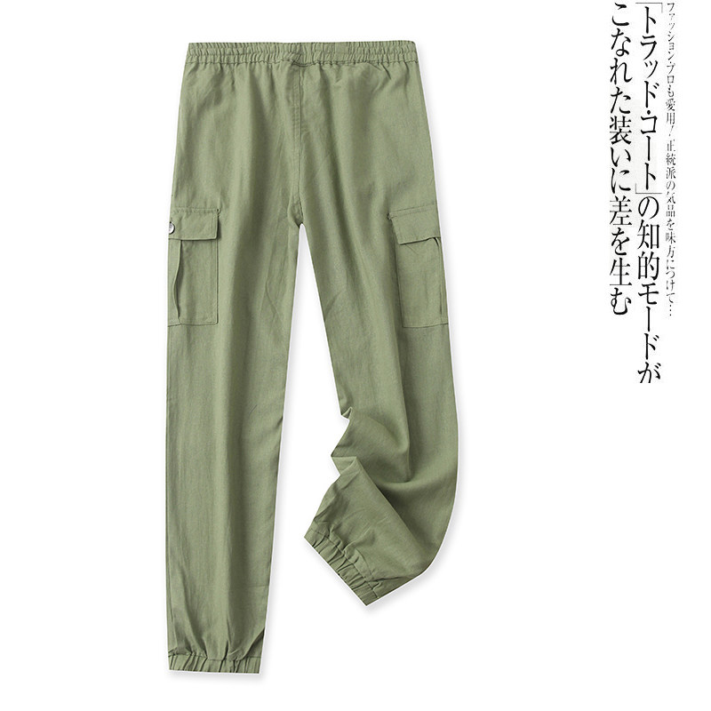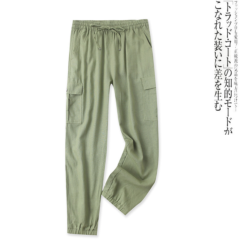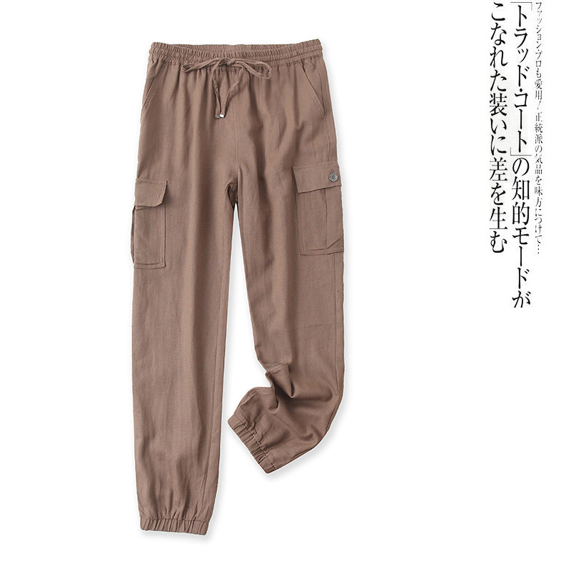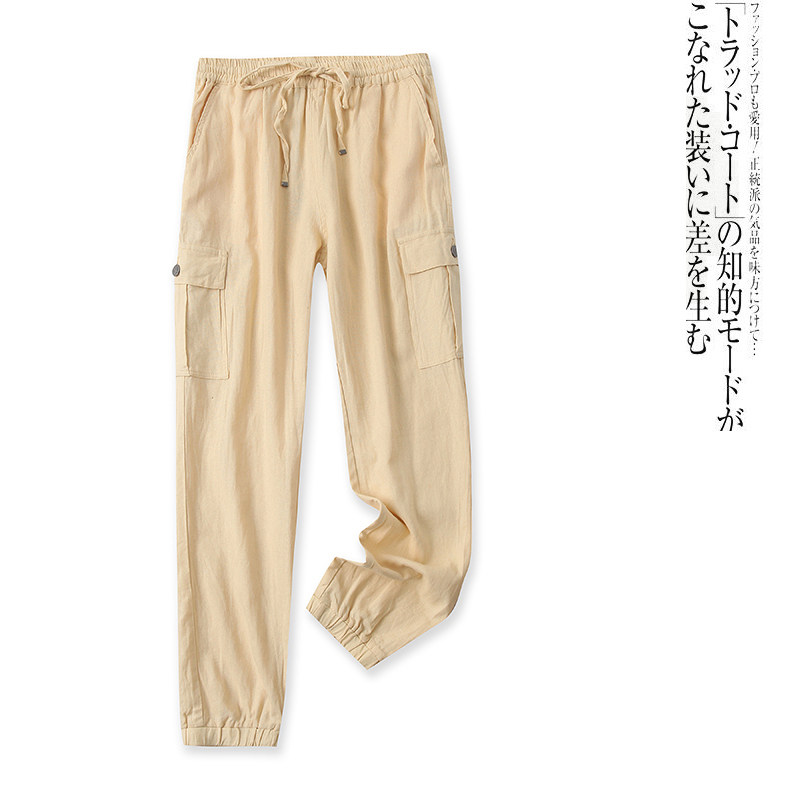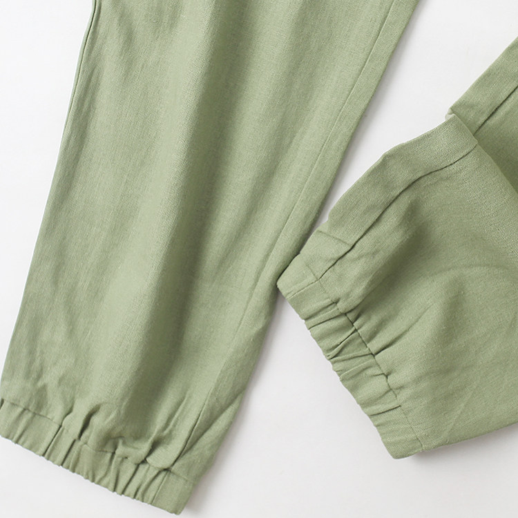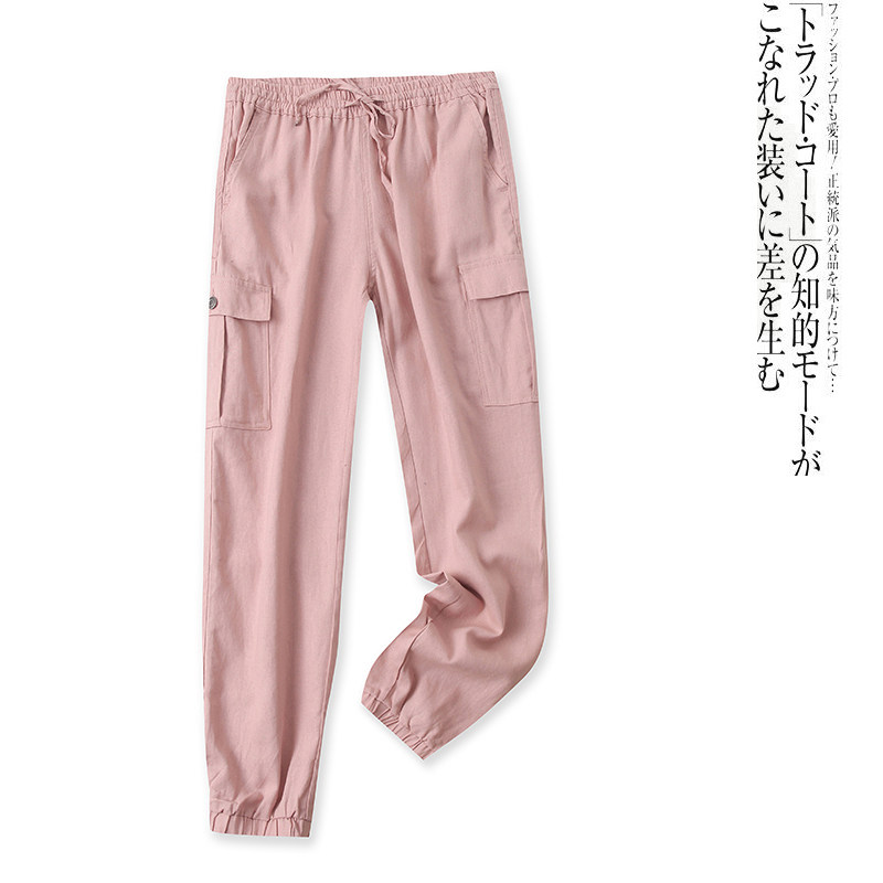 (Трансграничная торговля), осенние штаны, из хлопка и льна, высокая талия