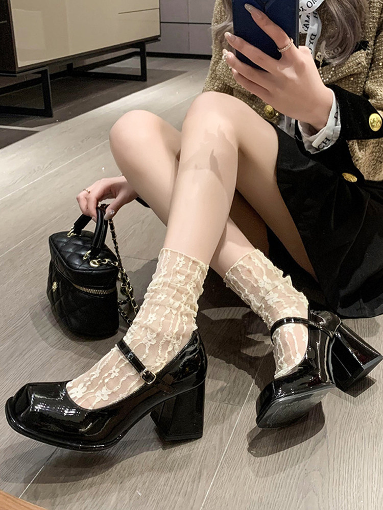 Мэри Чжэнь Толстые каблуки высокие каблуки женские женские 2025 Осень Новые женские туфли высокие каблуки