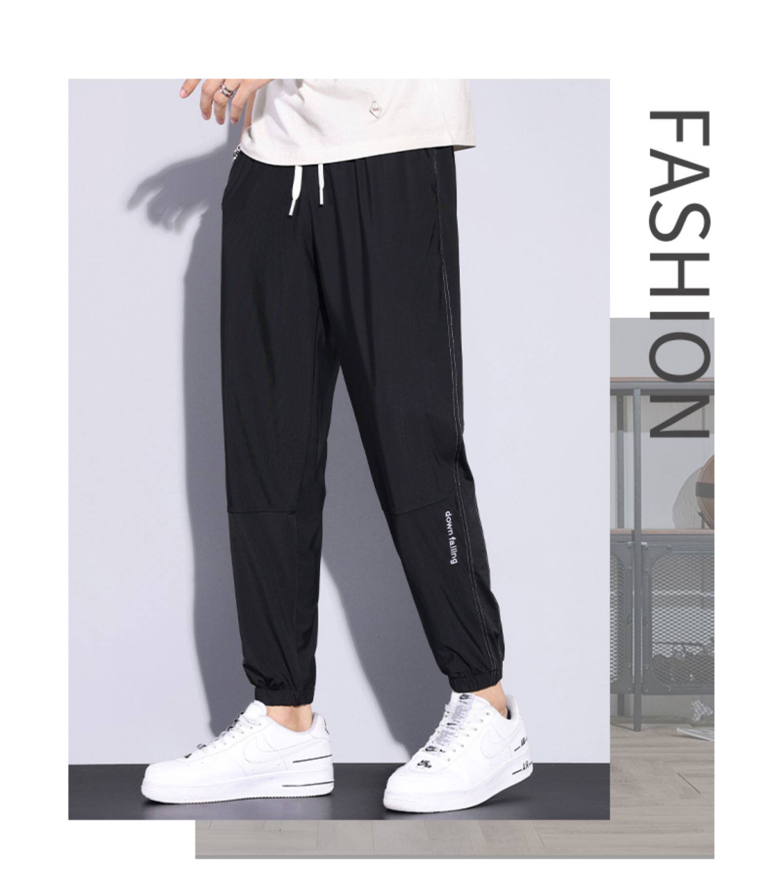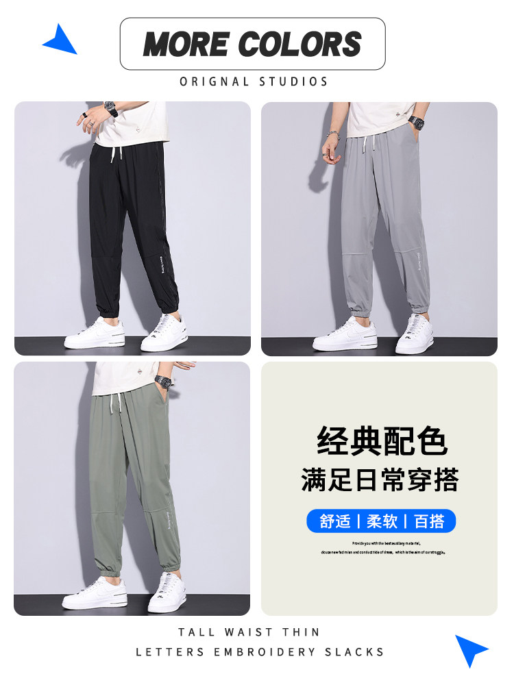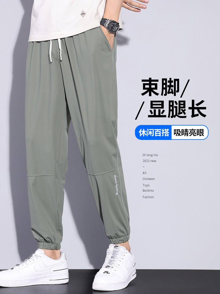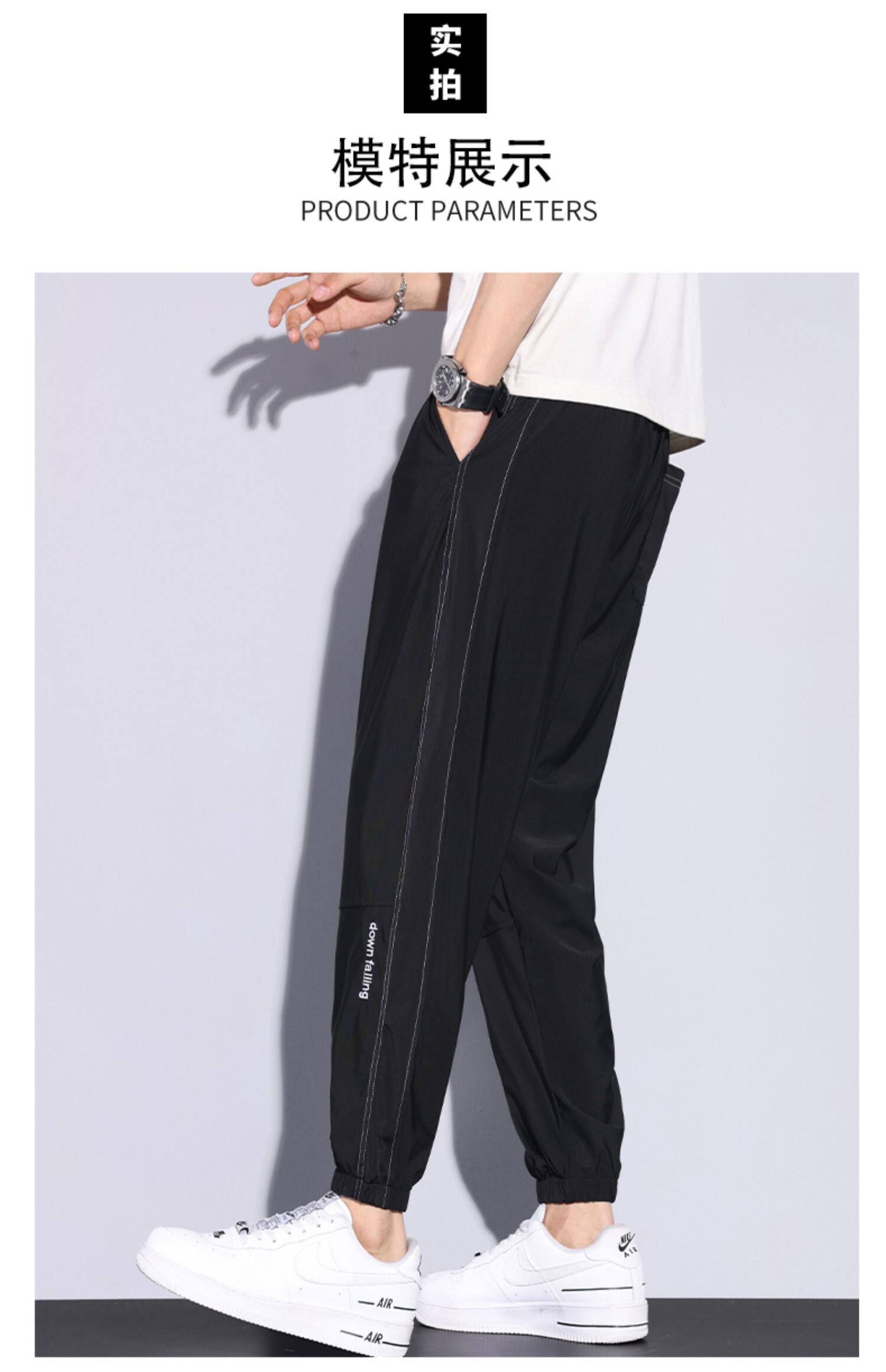 Мужские дышащие универсальные тонкие шелковые спортивные штаны, оверсайз