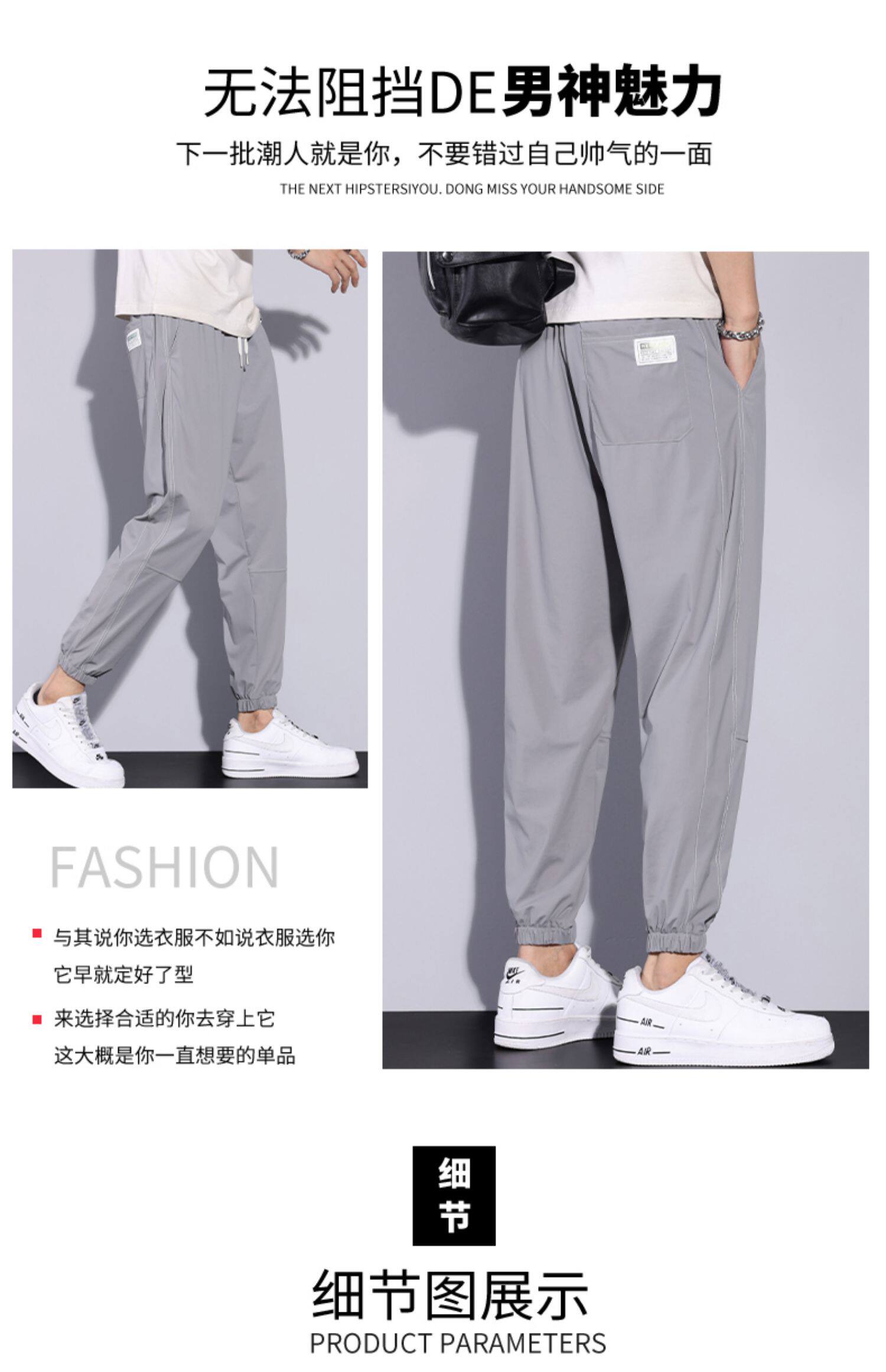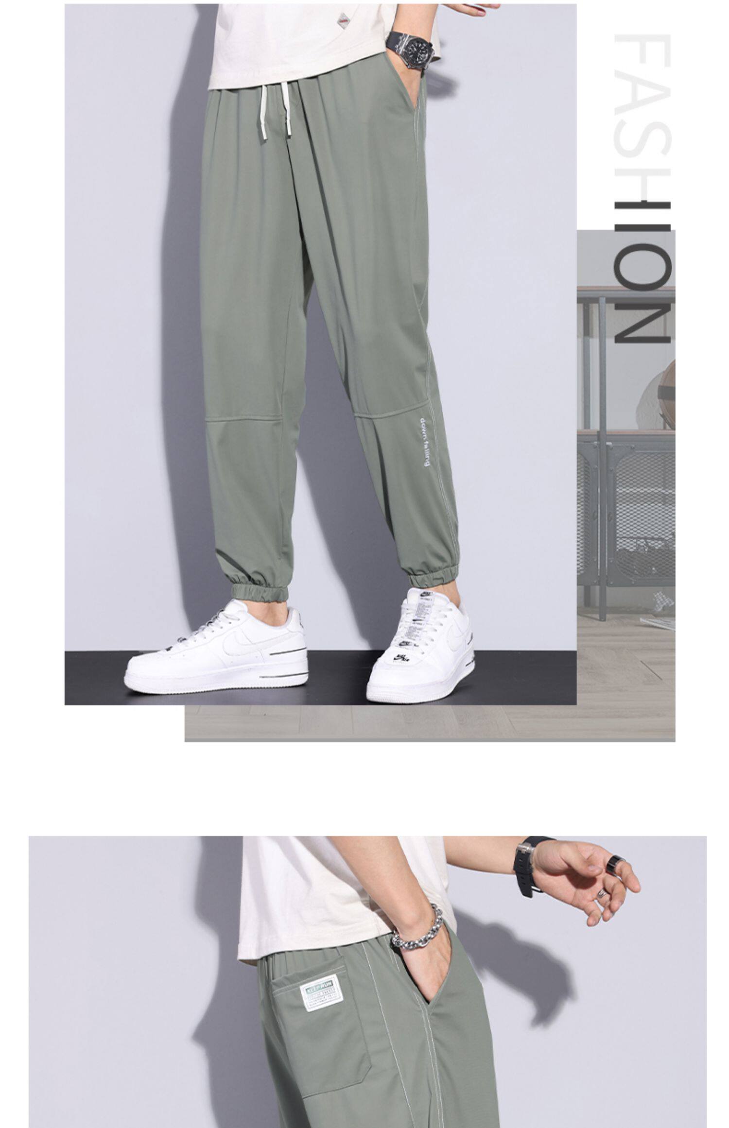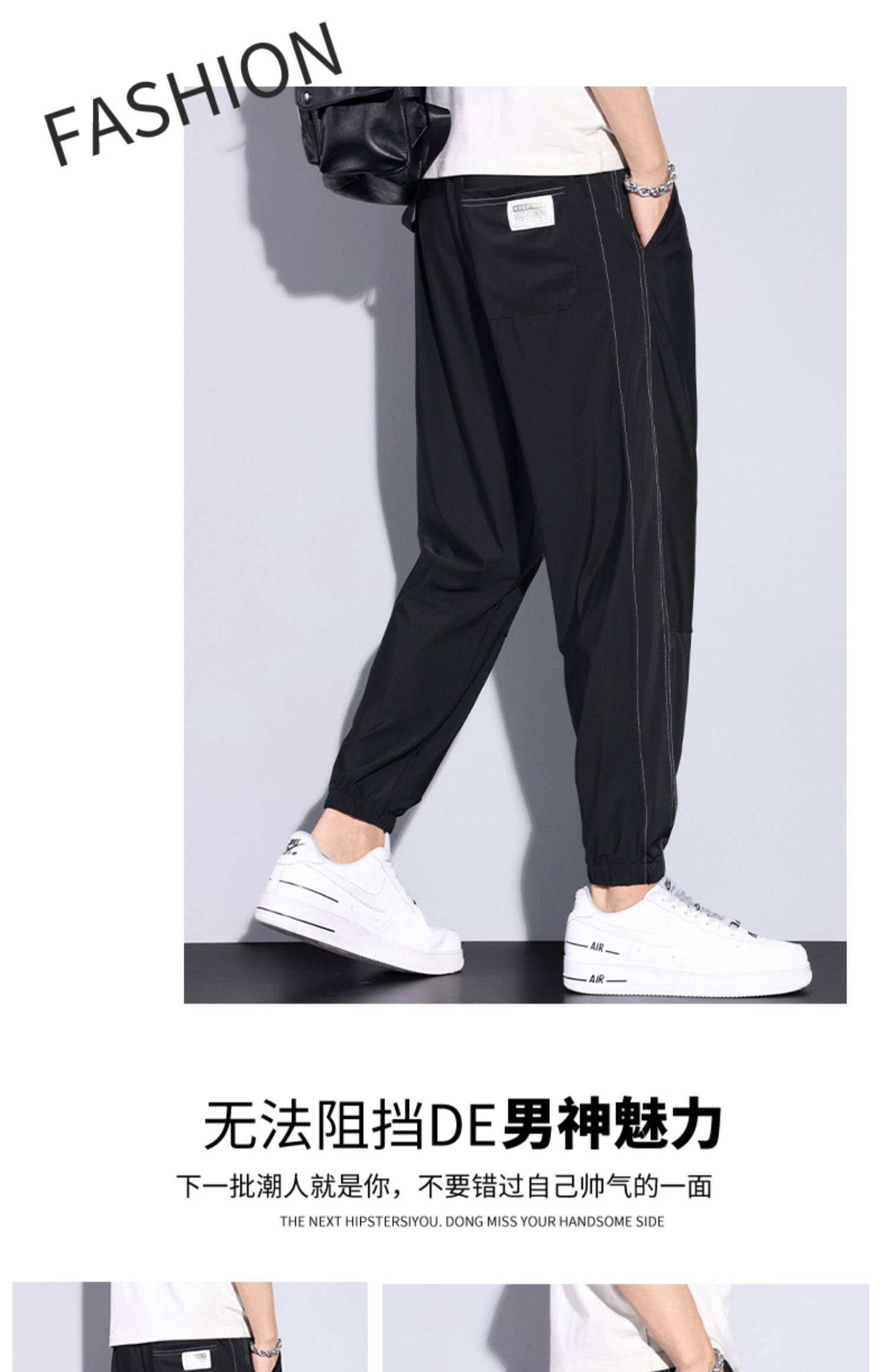 Мужские дышащие универсальные тонкие шелковые спортивные штаны, оверсайз