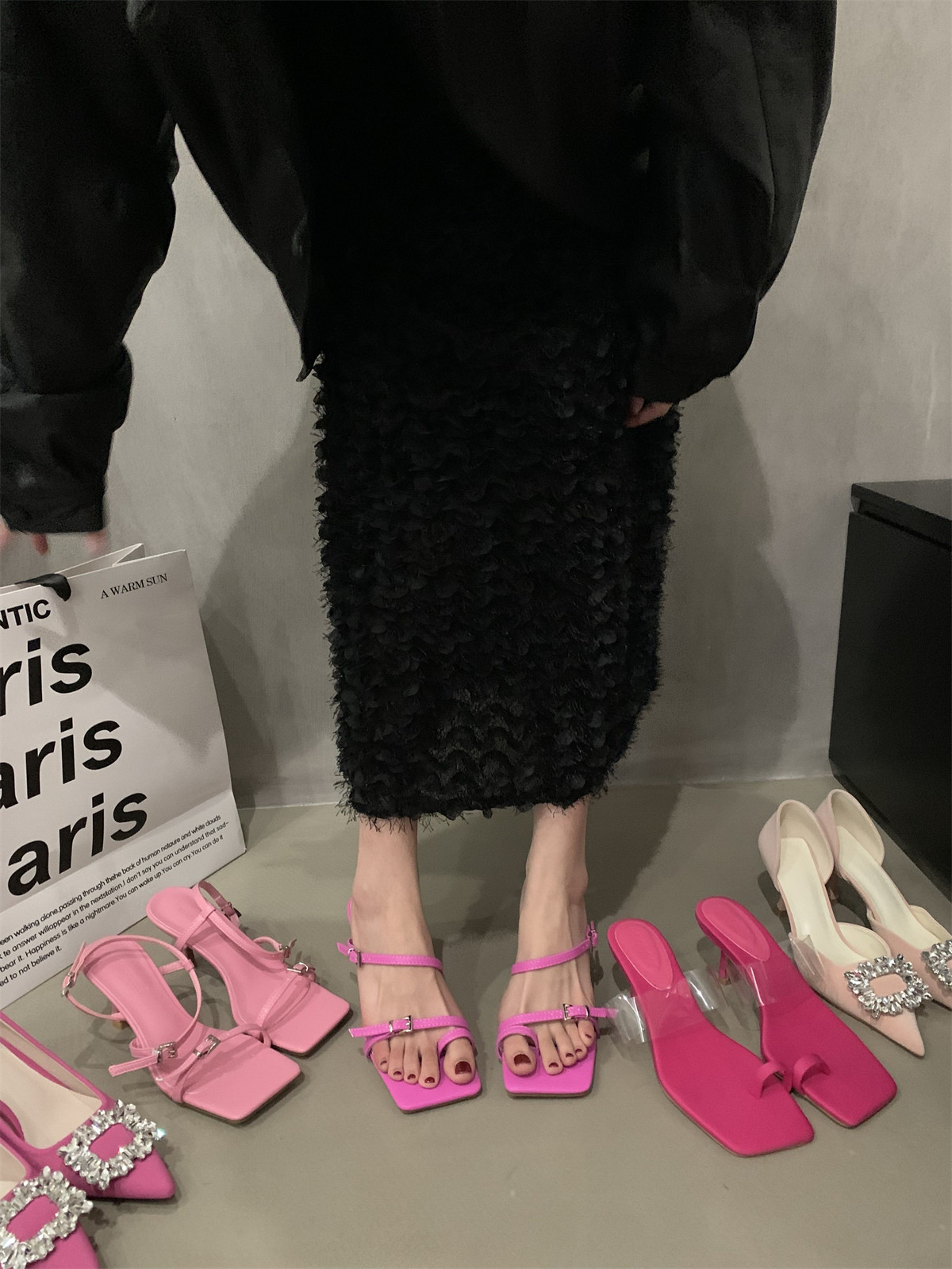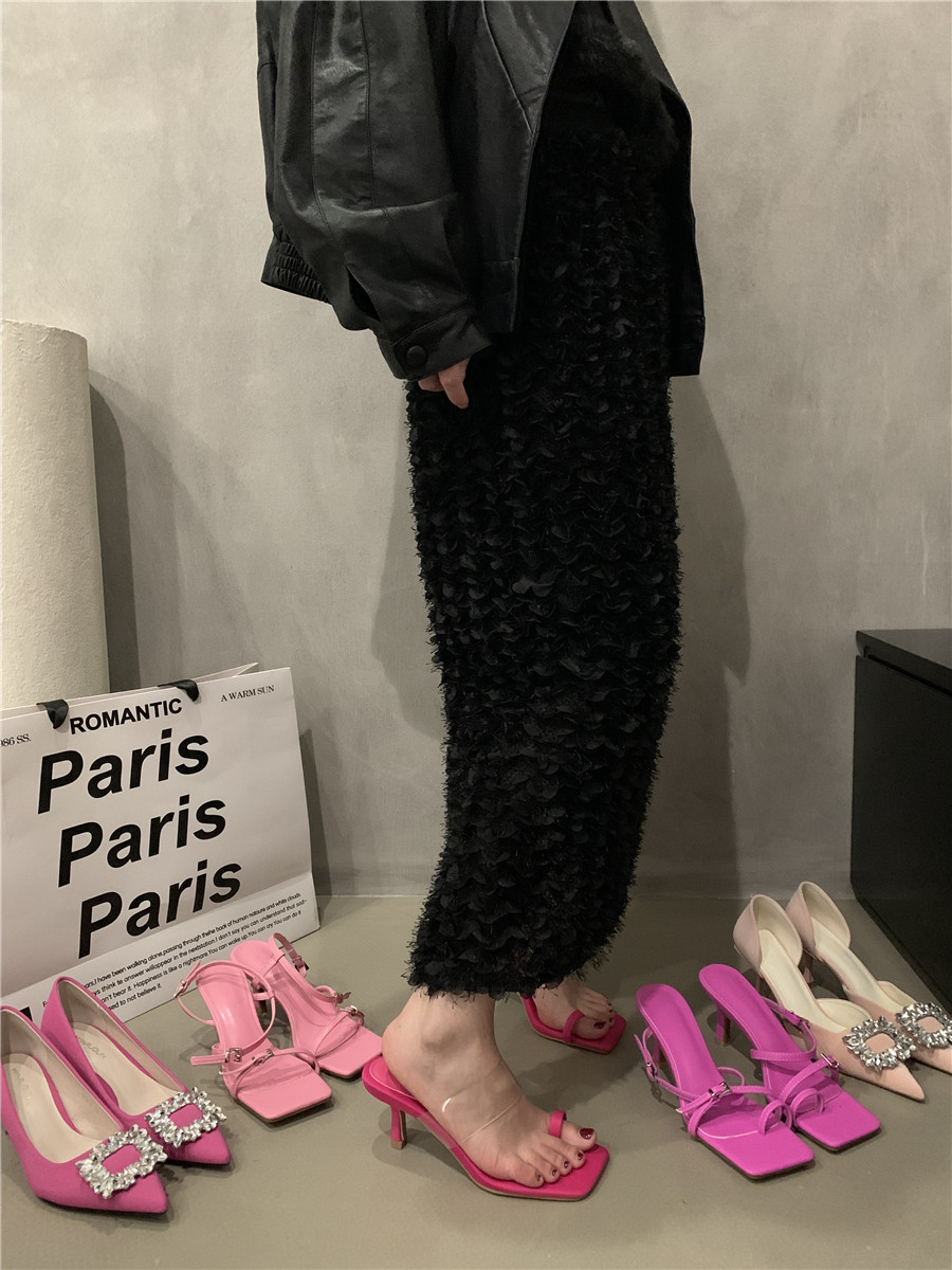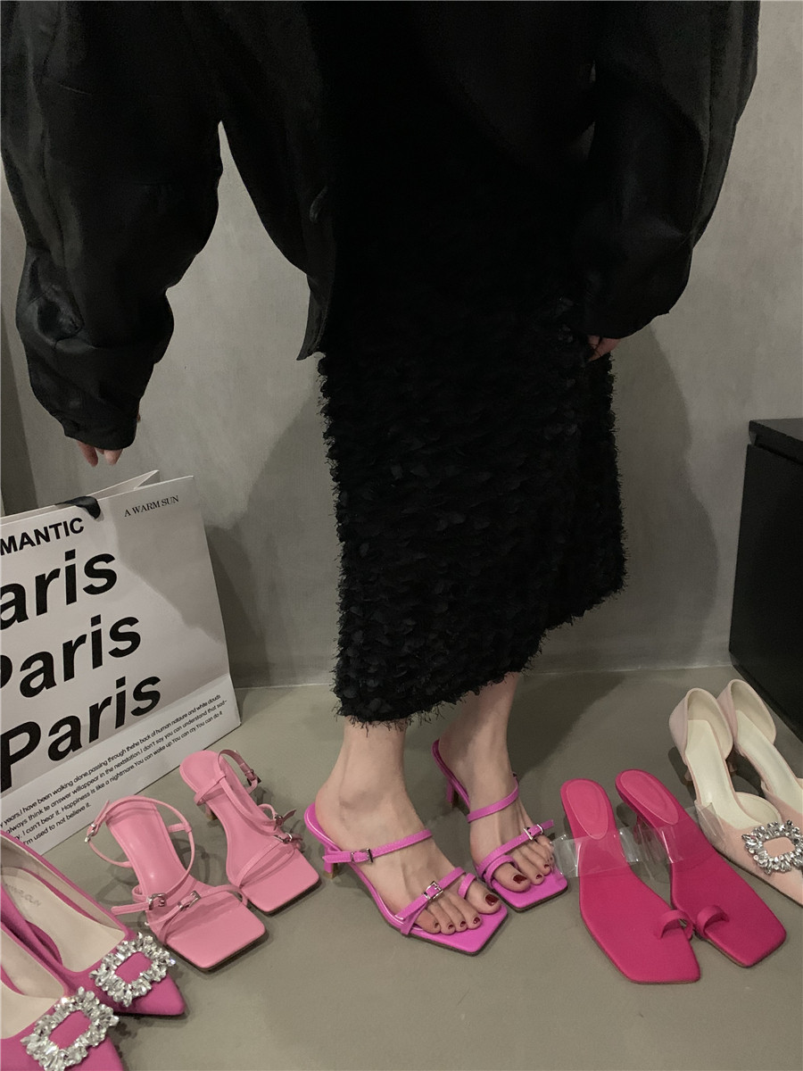 Сандалии, подходит с юбкой, обувь, слайдеры на высоком каблуке, тапочки, изысканный стиль, французский стиль