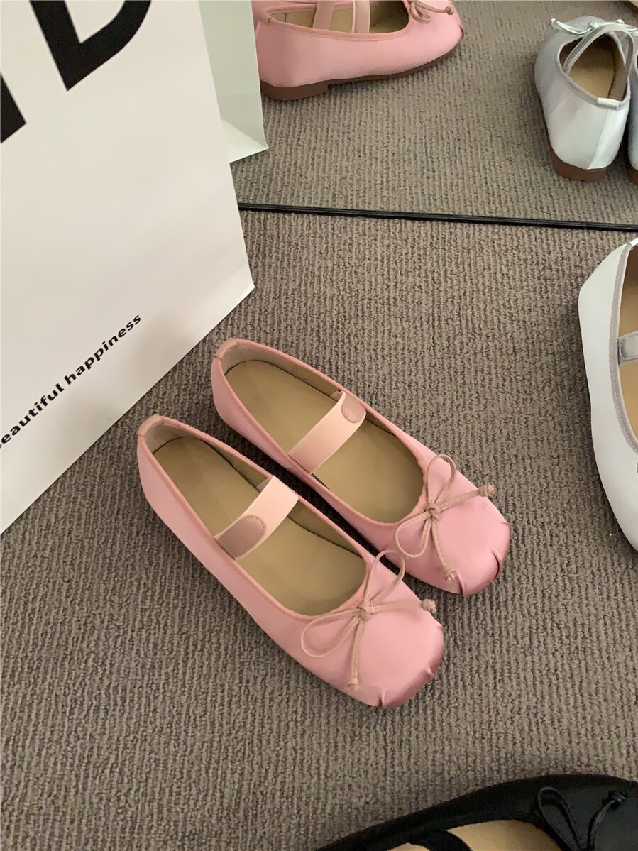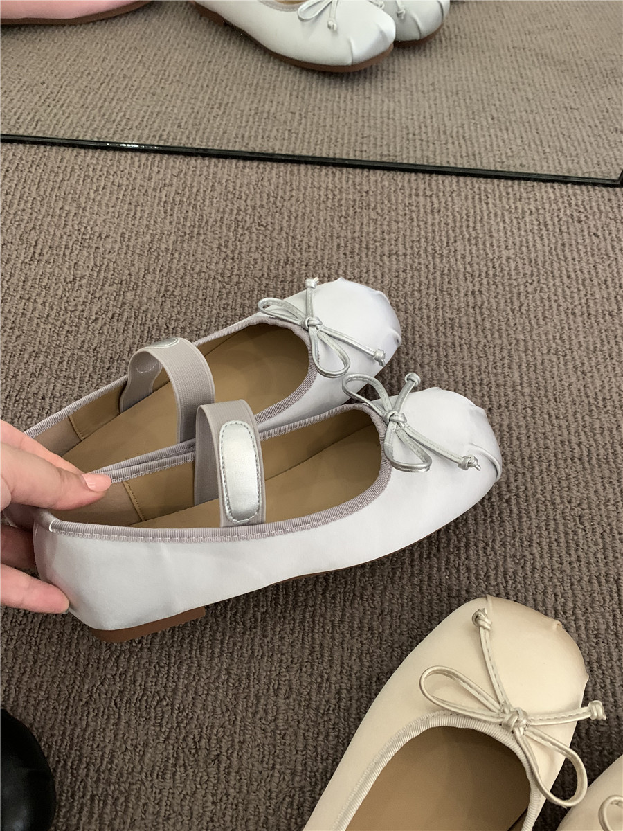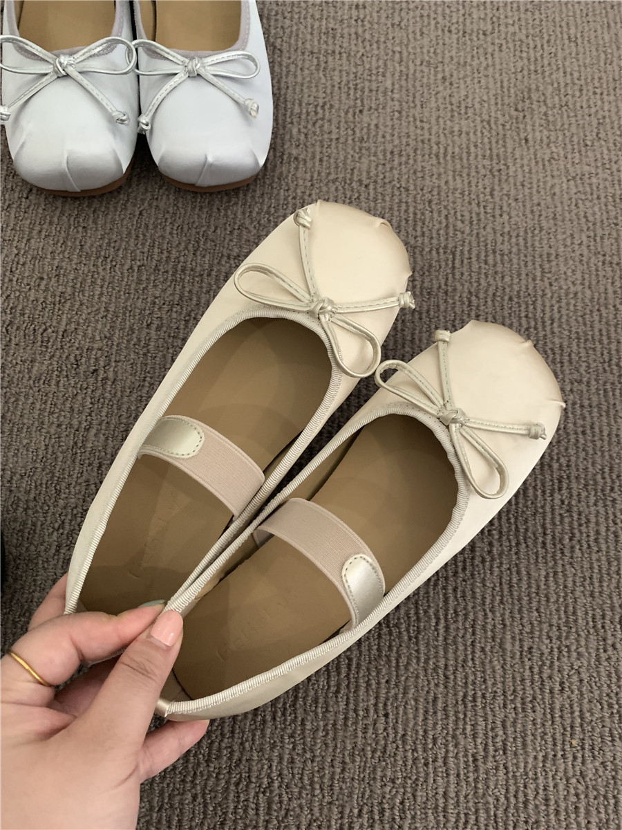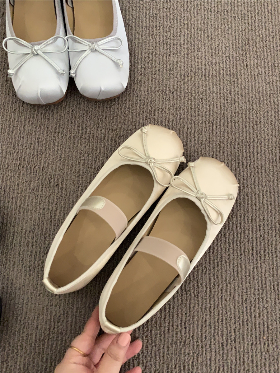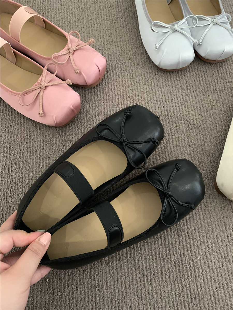 Балетки с бантиком с низким вырезом, плоская подошва обувь, весенняя подходит с юбкой, французский стиль