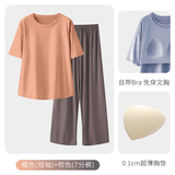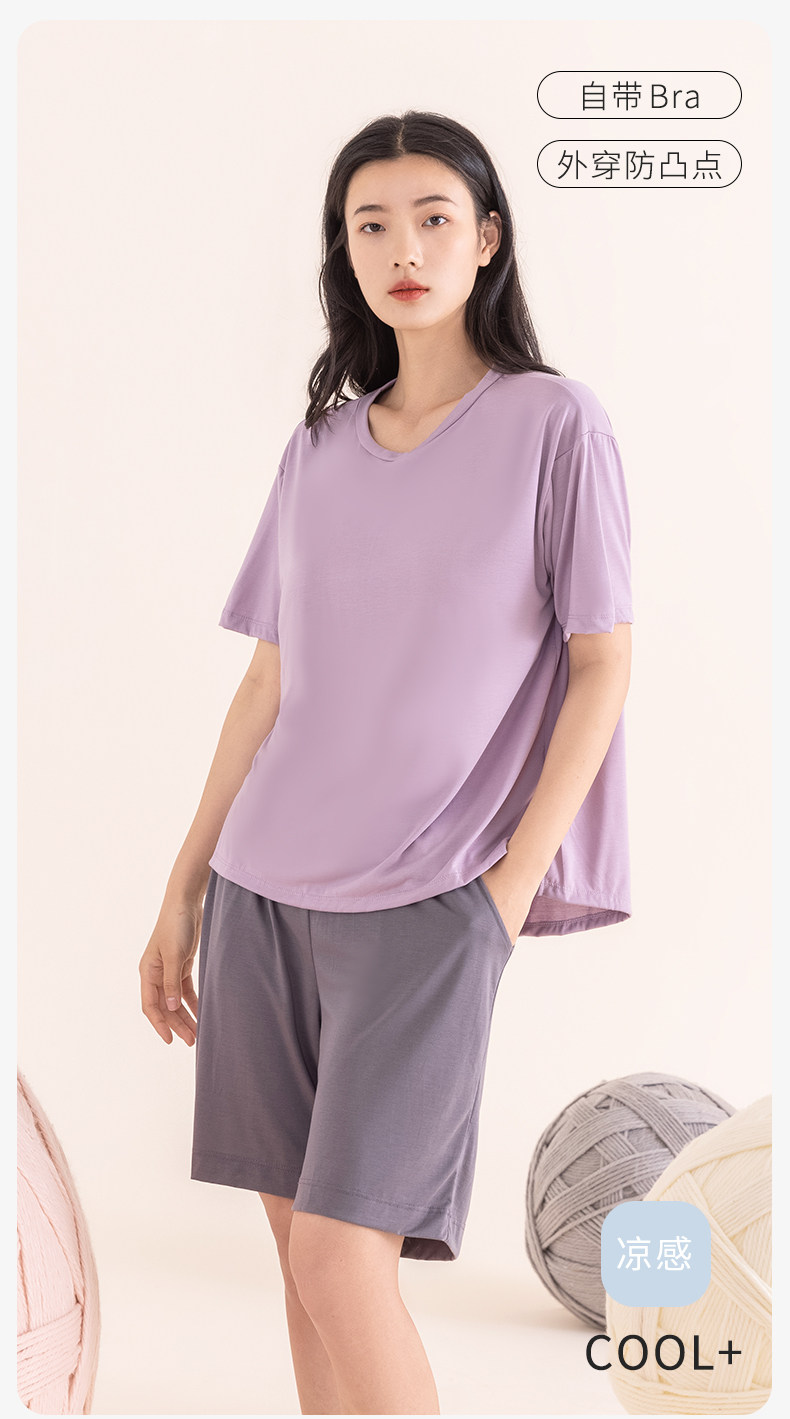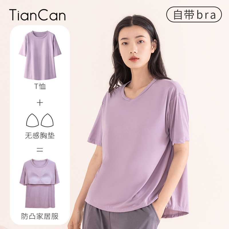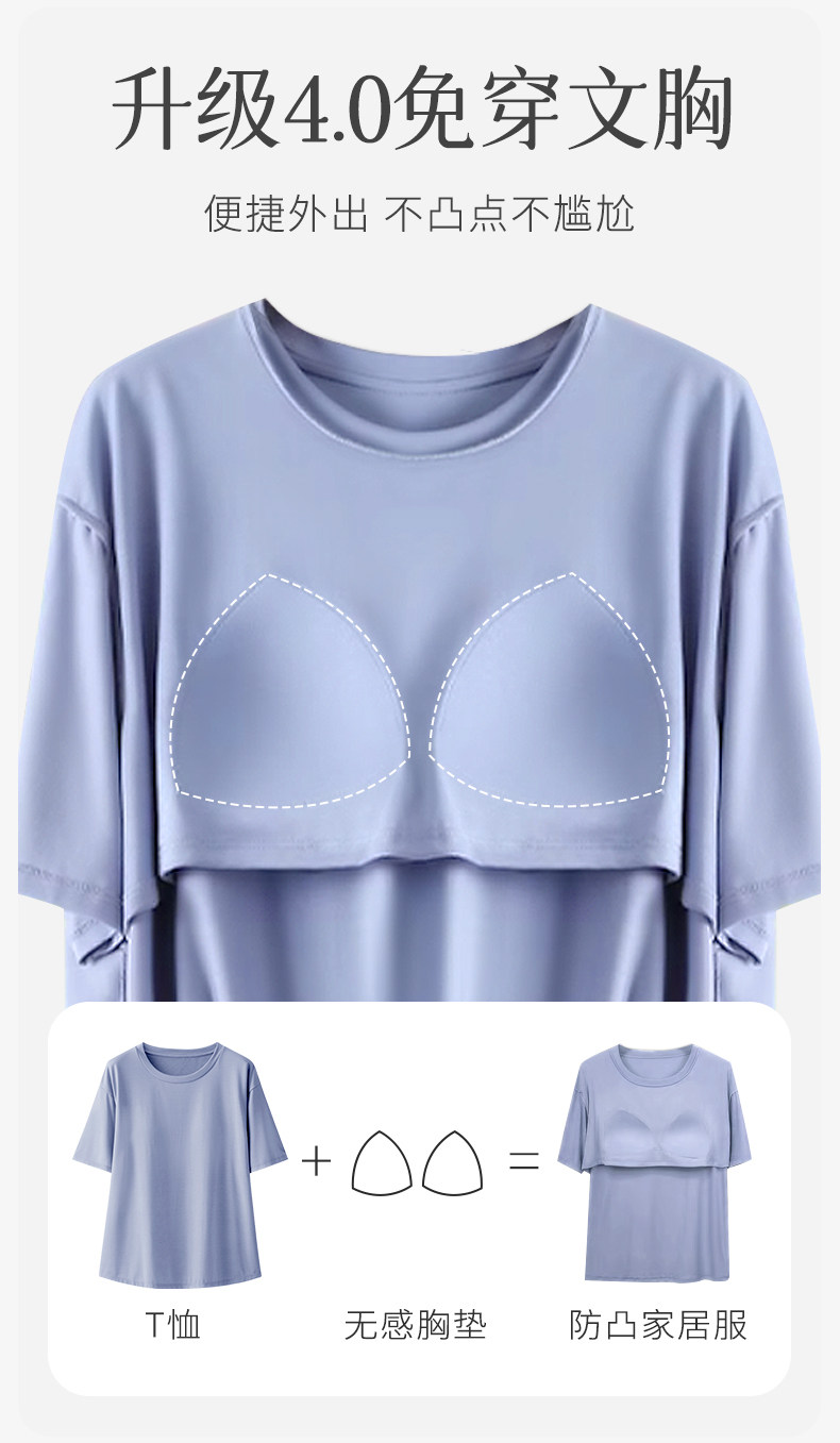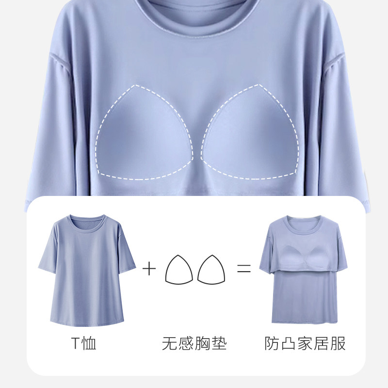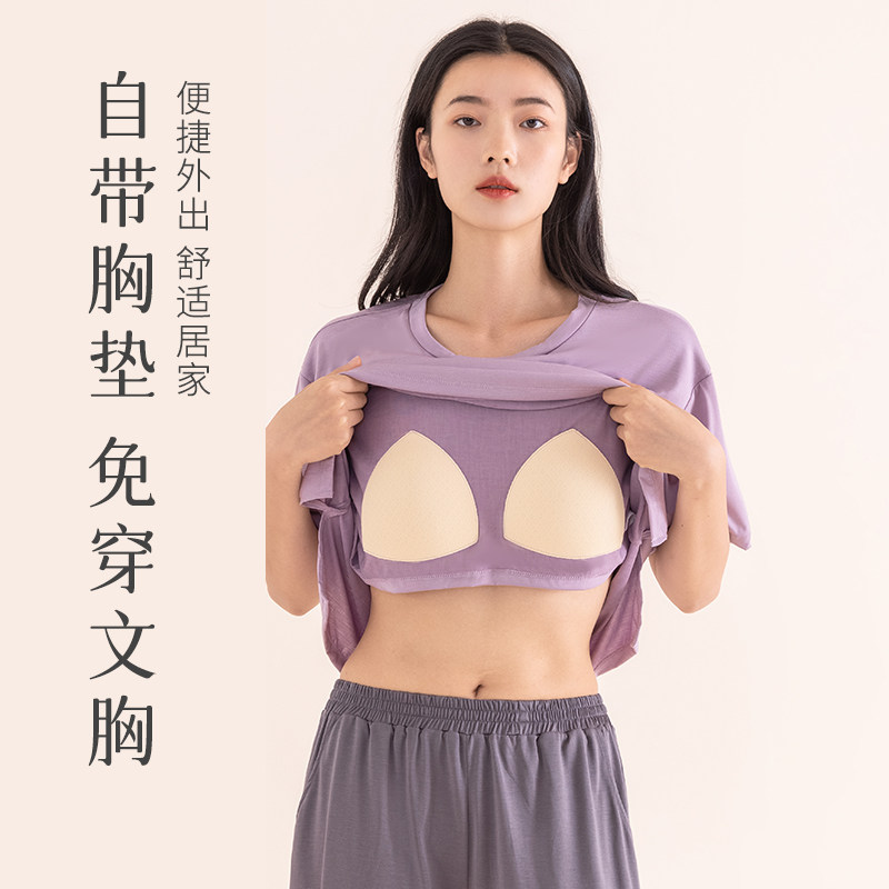 Топ с чашечками, пижама, летняя тонкая футболка с коротким рукавом, шелковый комплект, короткий рукав