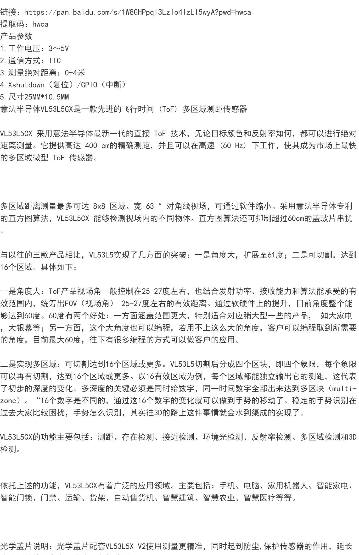 | Классификация цветов: | Одноплатный VL53L5X, VL53L5X с крышкой |