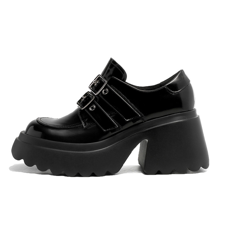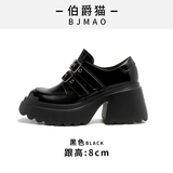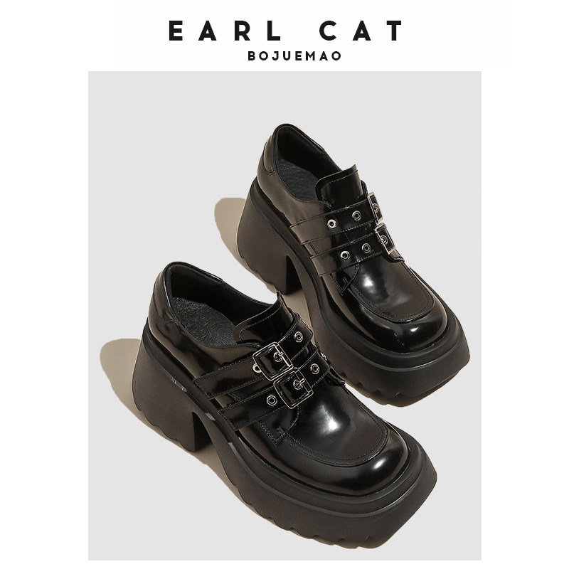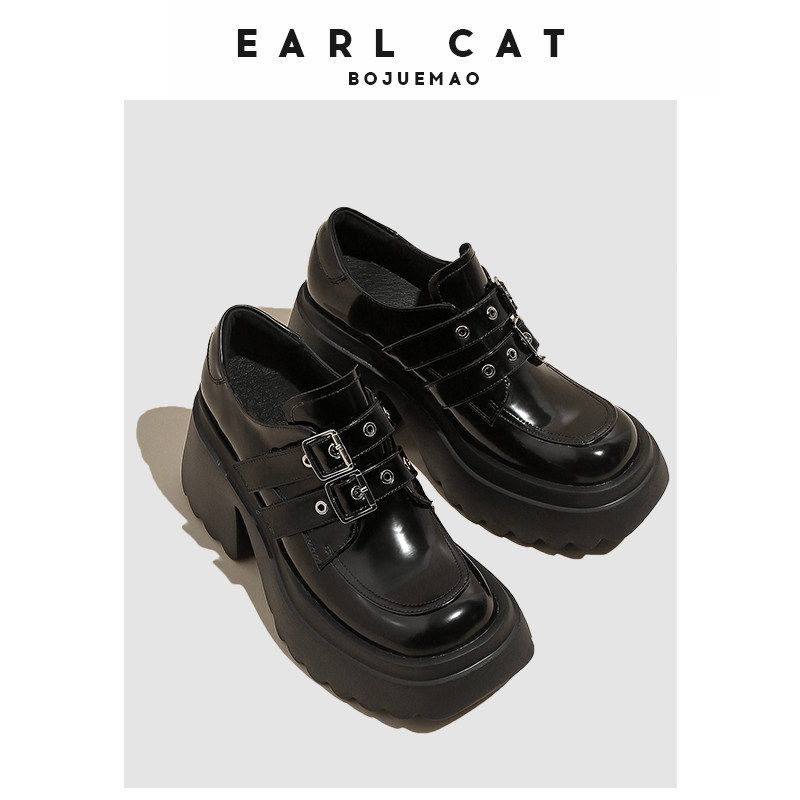 伯爵猫 Весенняя высокая обувь в английском стиле на платформе с низким вырезом для кожаной обуви, в британском стиле, 2024 года, тренд сезона