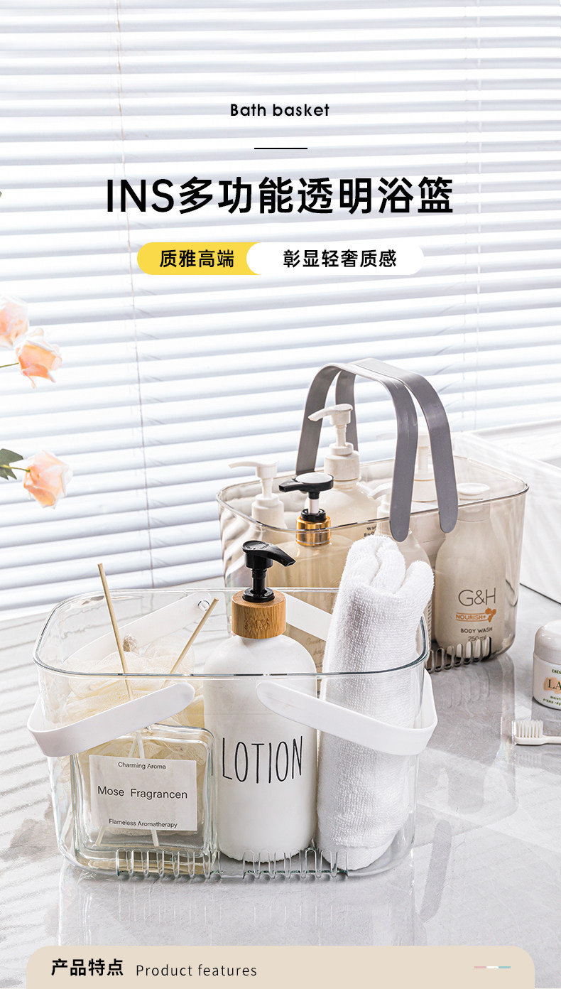 Прозрачная ручная банная корзина для хранения корзины для хранения ванной комнаты для ванной комнаты для бани для студенческой бани Разное туалетные принадлежности корзина