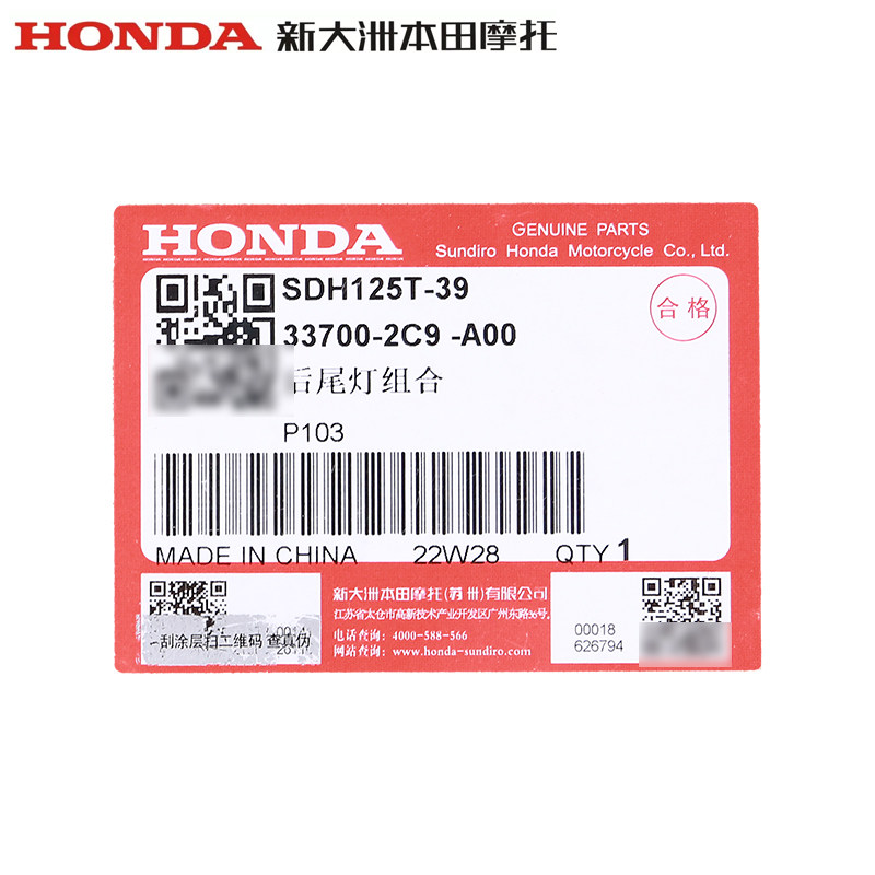 Новый континент Honda NS125LA задний хвостовой ламп SDH125T-39 Post Light (оригинальный аутентичный)
