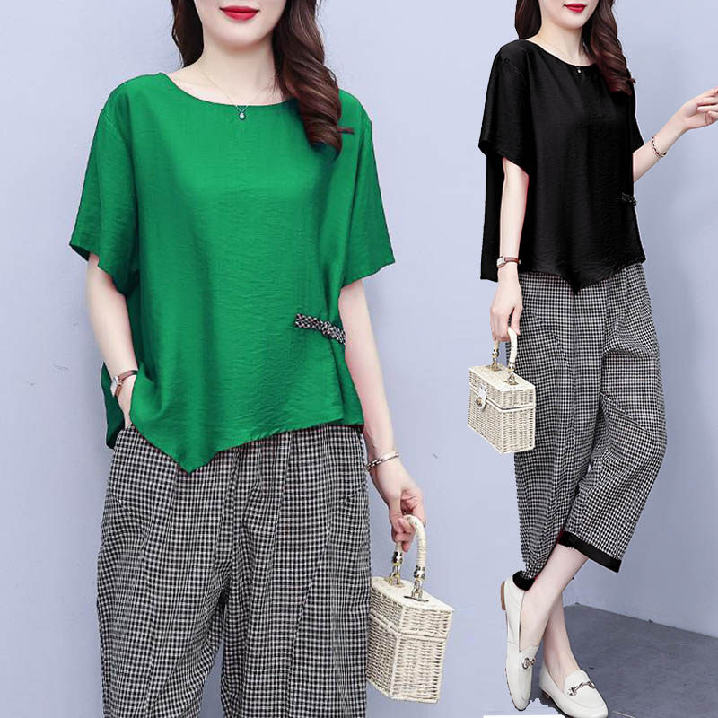Штаны, шелковый комплект, большой размер, коллекция 2023, из хлопка и льна