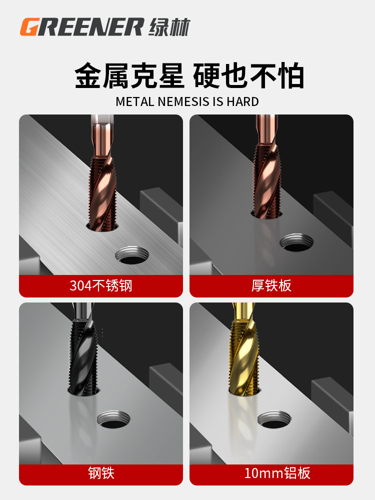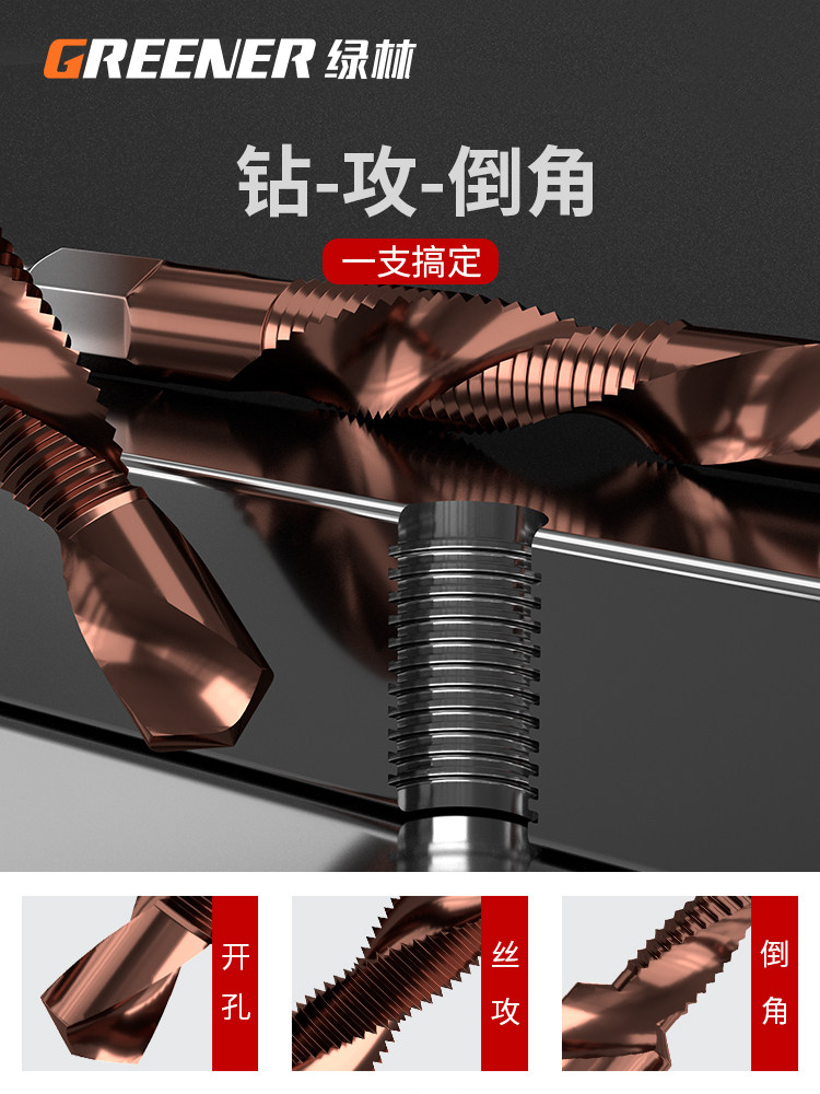 Станок для сверления и нарезания резьбы в зеленом лесу с композитным метчиком, спиральное сверло для нарезания резьбы из нержавеющей стали, специальное нарезание резьбы, саморез М4