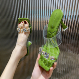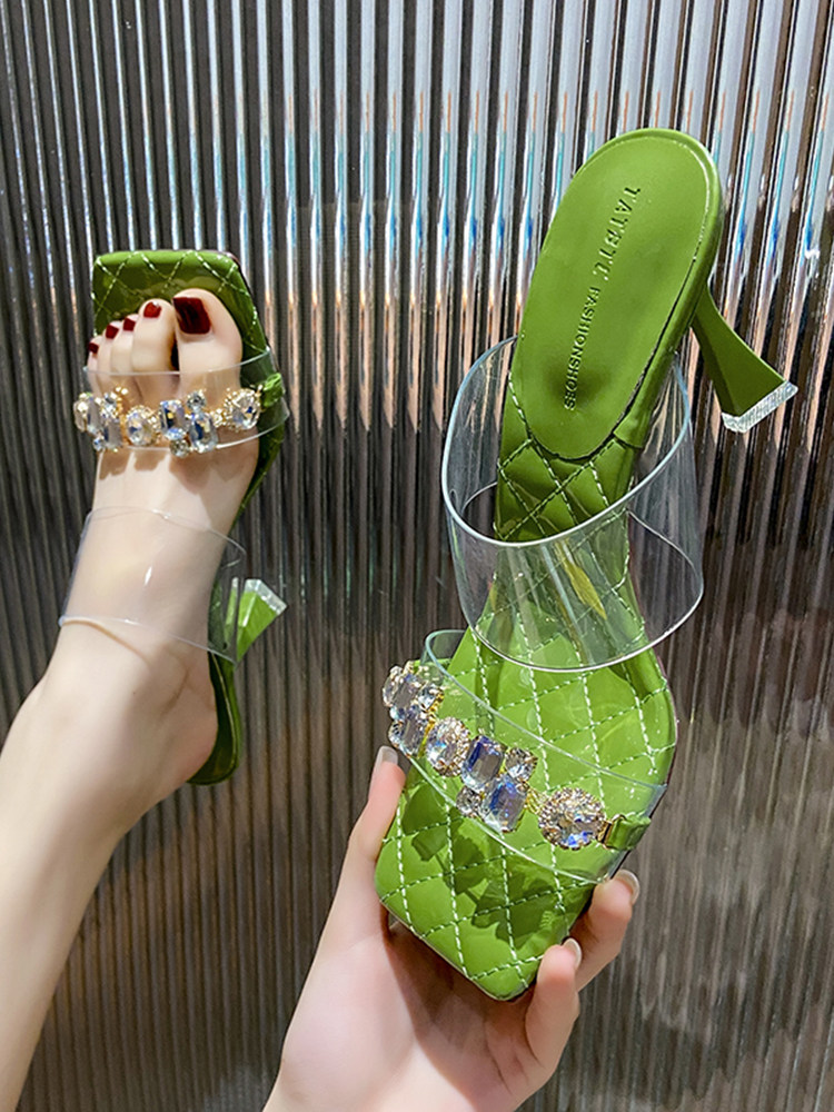 Зеленые туфли на высоком каблуке с ремешком, тапочки, 2023, популярно в интернете