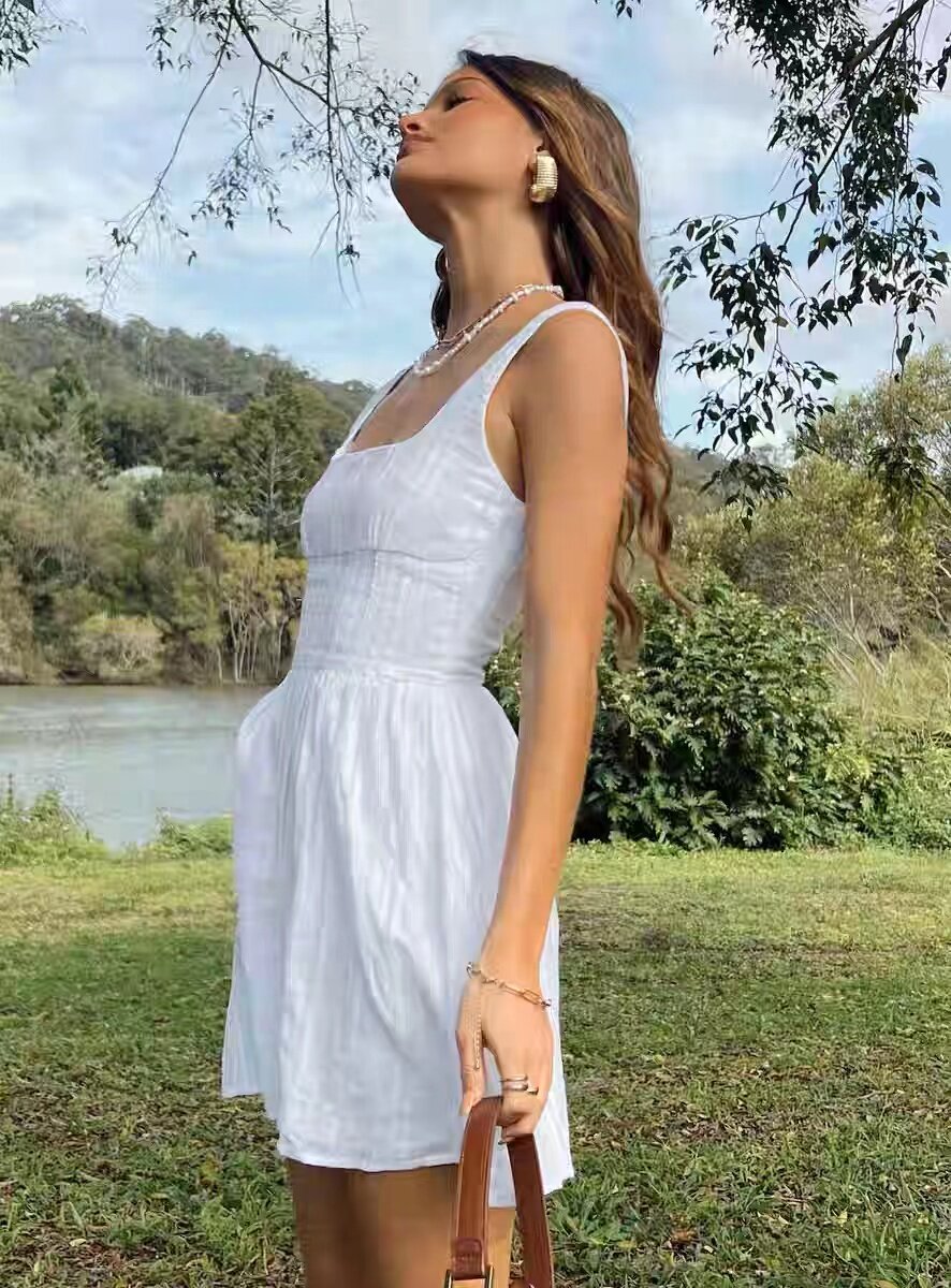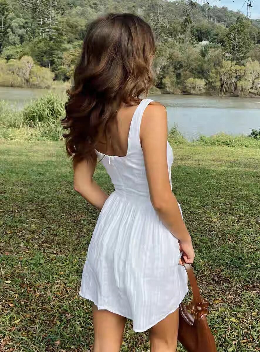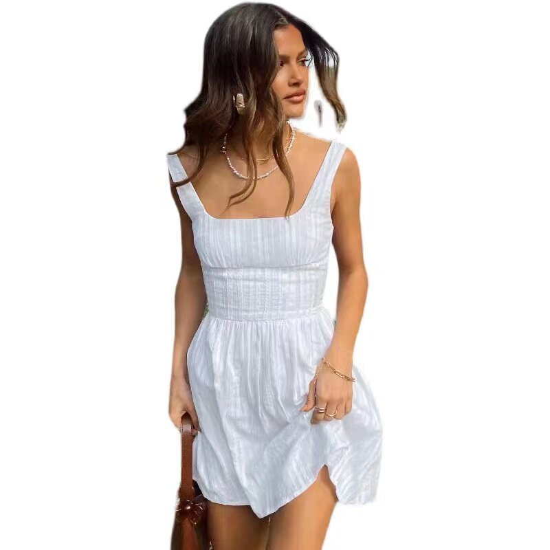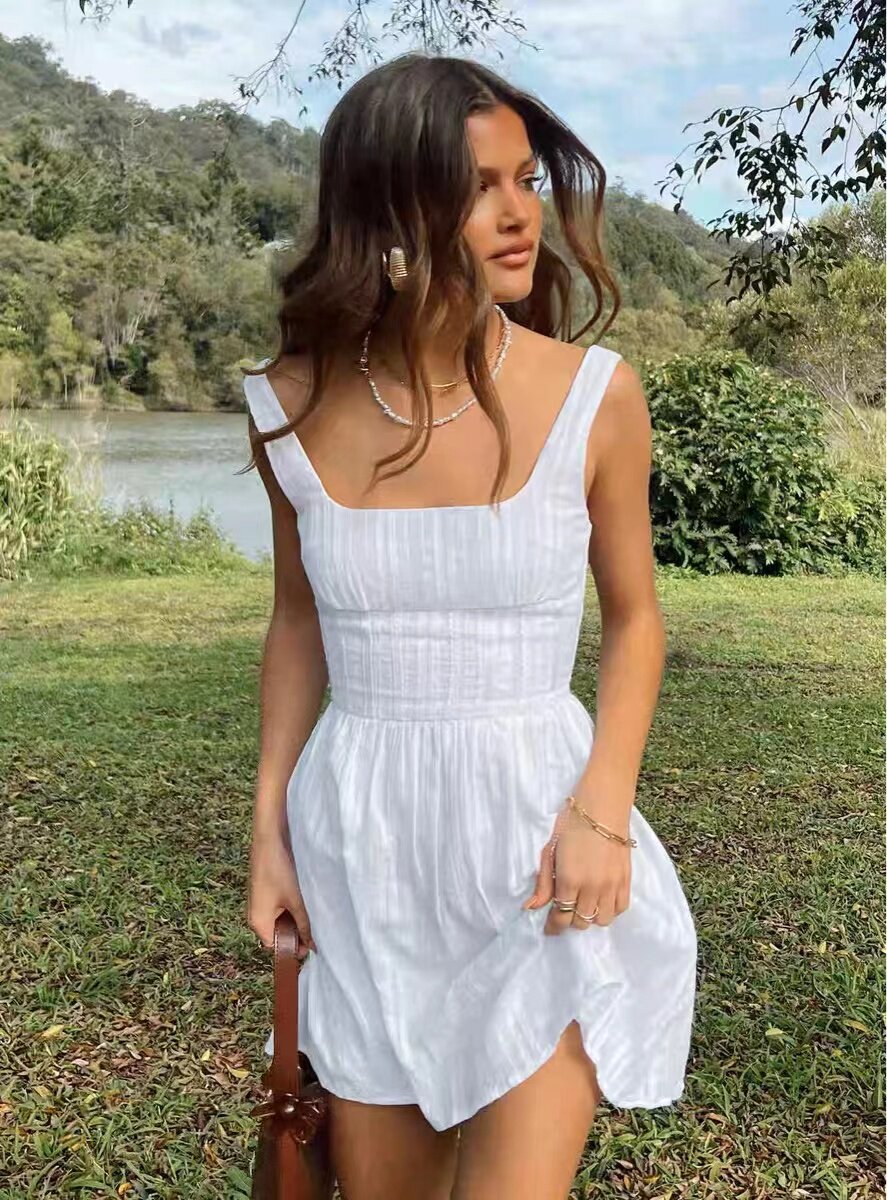Белый ретро хлопковый маленький корсет, платье, квадратный вырез