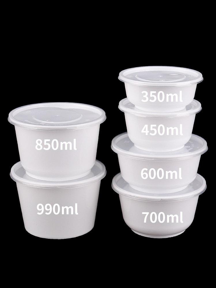 Одноразовая чаша с крышкой ледовочной порошкой горячей и кислой лапши Коммерческая 1000 мл коробка с микроволновой печи с круглой едой