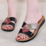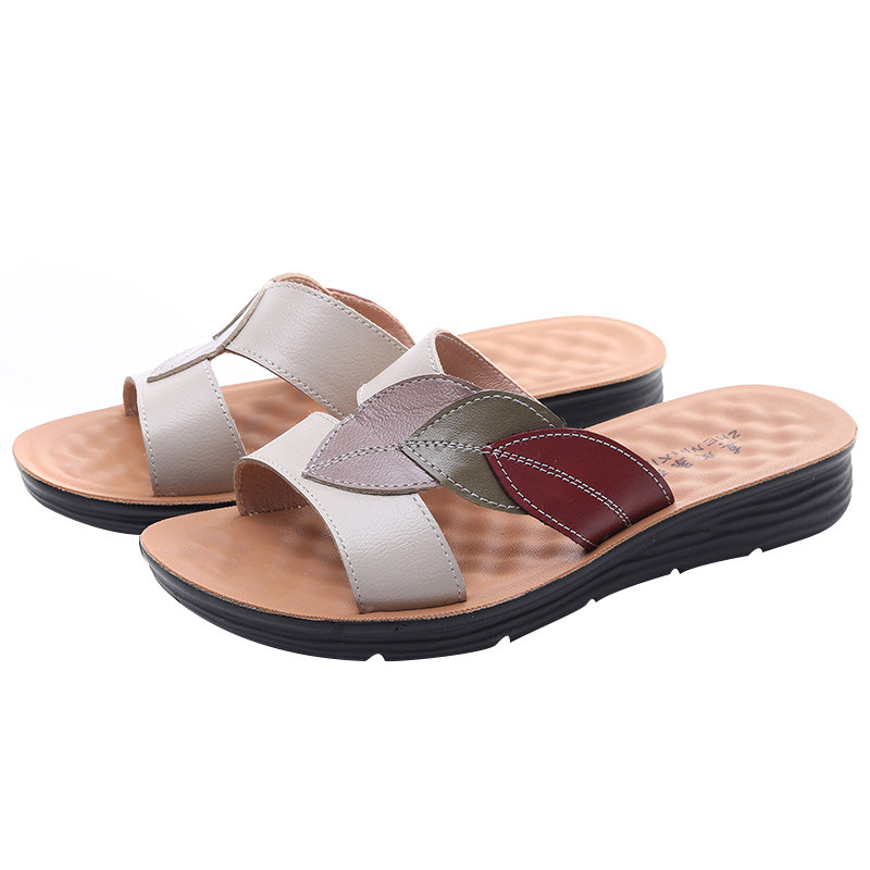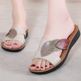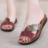 Тапочки для матери, летняя обувь, комфортные нескользящие сандалии, слайдеры, из натуральной кожи, мягкая подошва, для среднего возраста