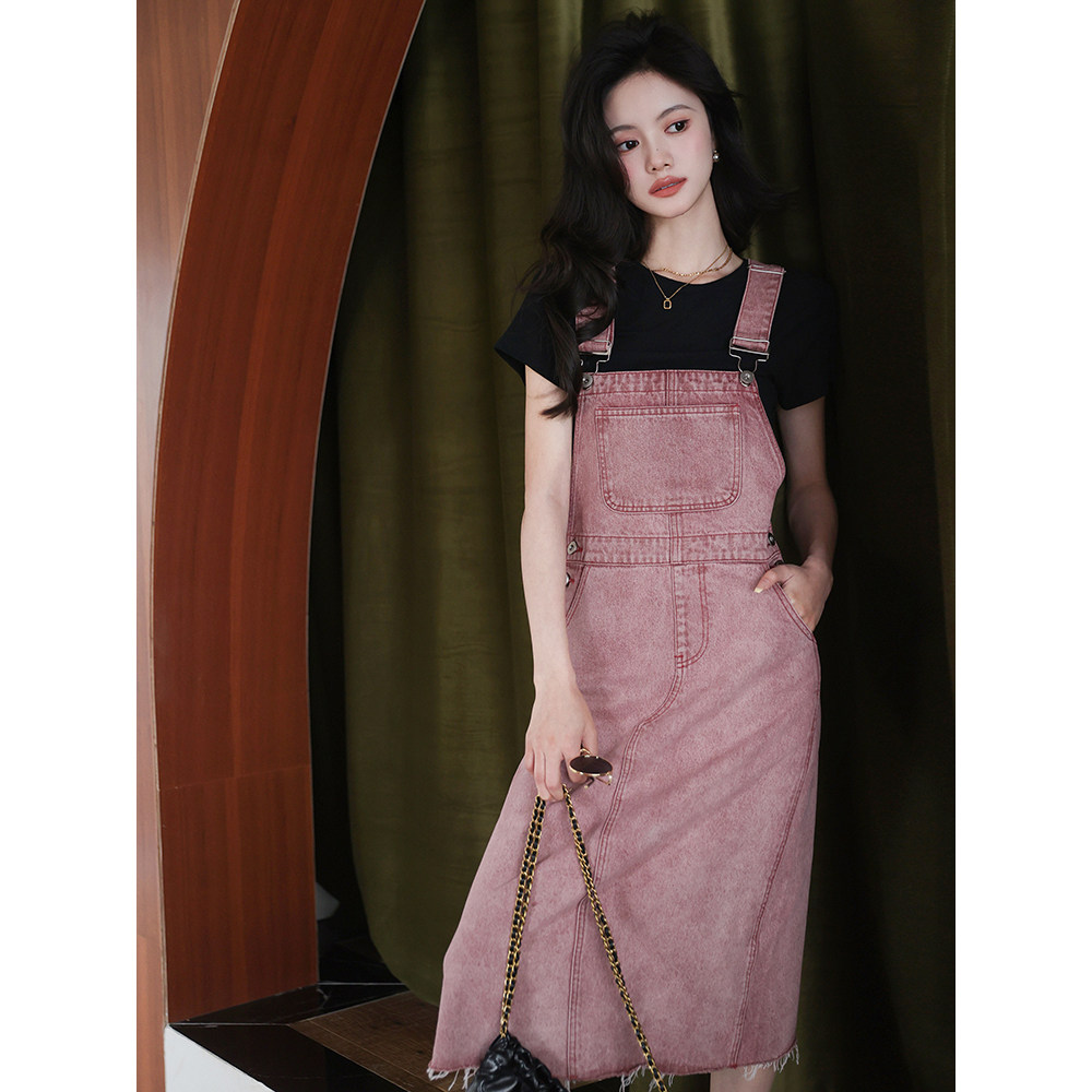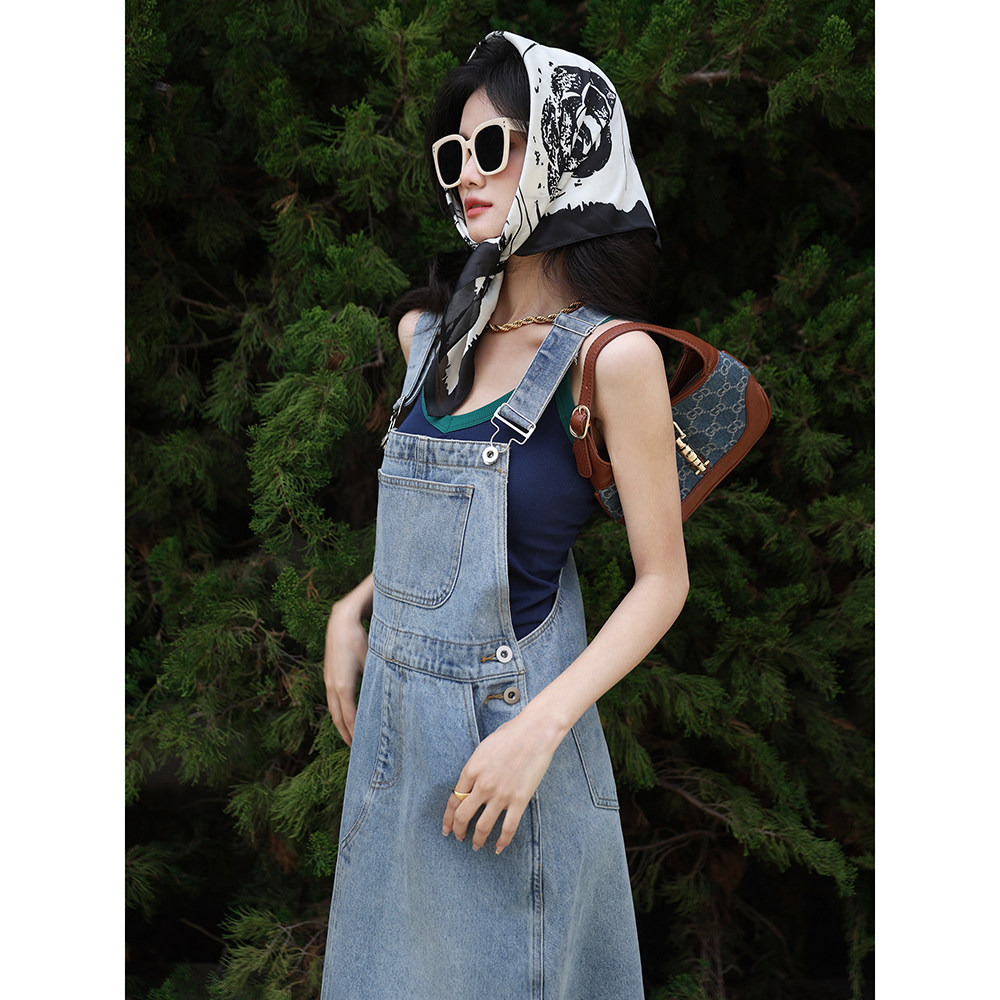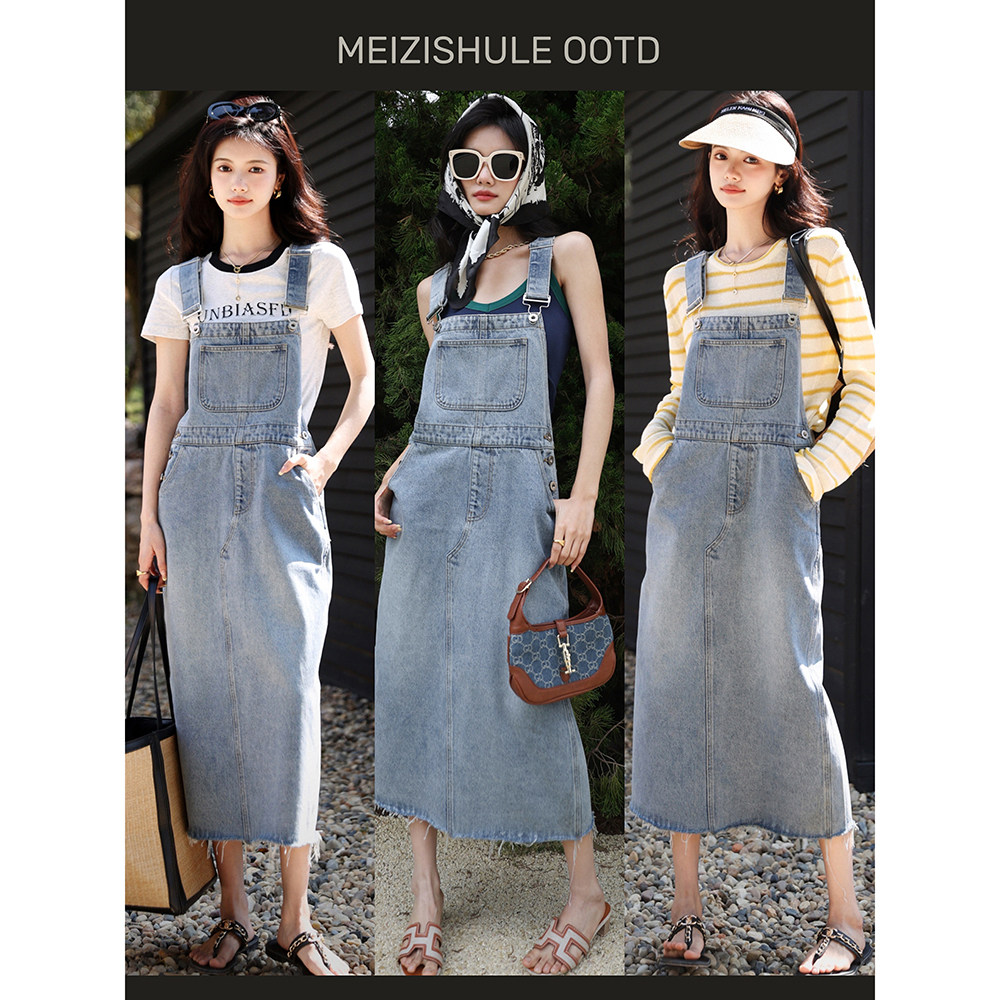 梅子熟了 Джинсовые подтяжки, платье, приталенная длинная юбка, высокая талия