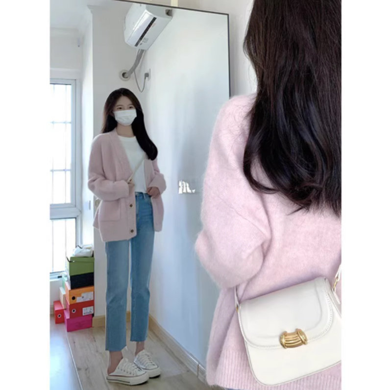Розовый свитер, осенний кардиган, милая трикотажная куртка, подходит для подростков