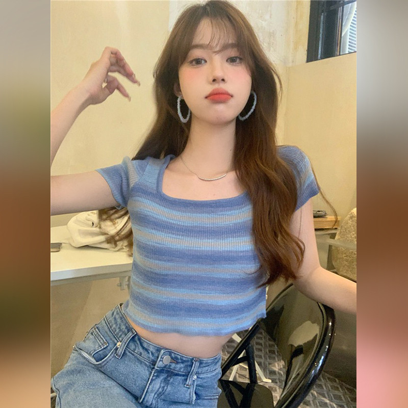 Короткая летняя приталенная футболка, квадратный вырез, короткий рукав