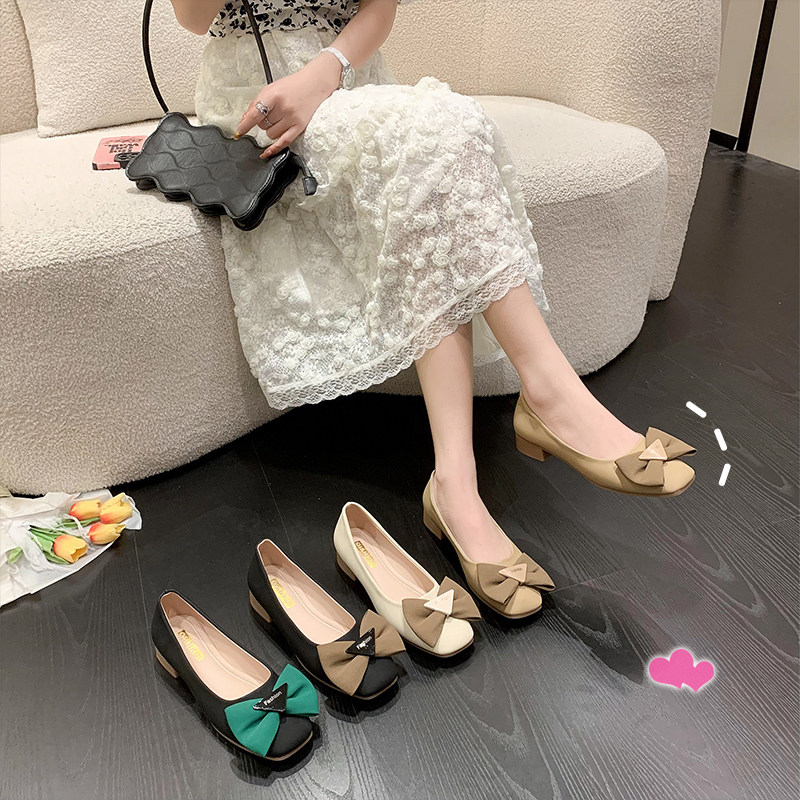 Весенняя обувь с бантиком, ретро подходит с юбкой с низким вырезом, 2023, тренд сезона