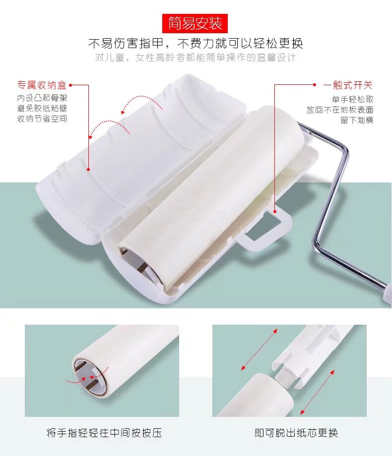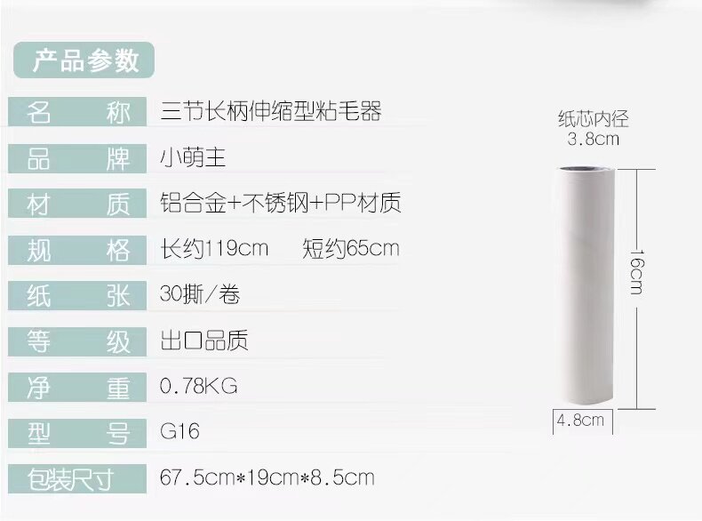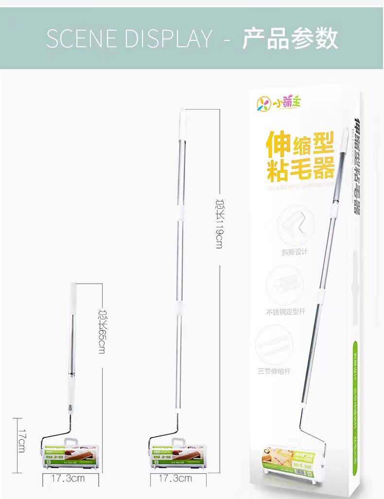 小萌主 Полной липкий шерстяной ролик телескопический длинное стержень дома для погружения одежды кровать чистая липкая пыль заменить рулонную бумагу