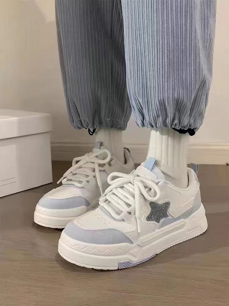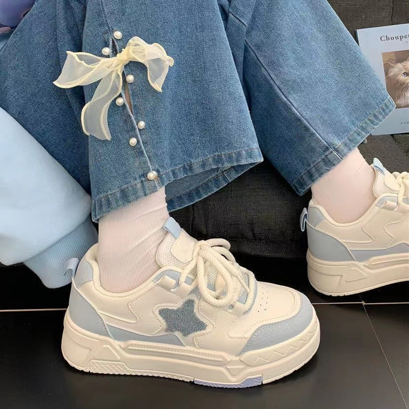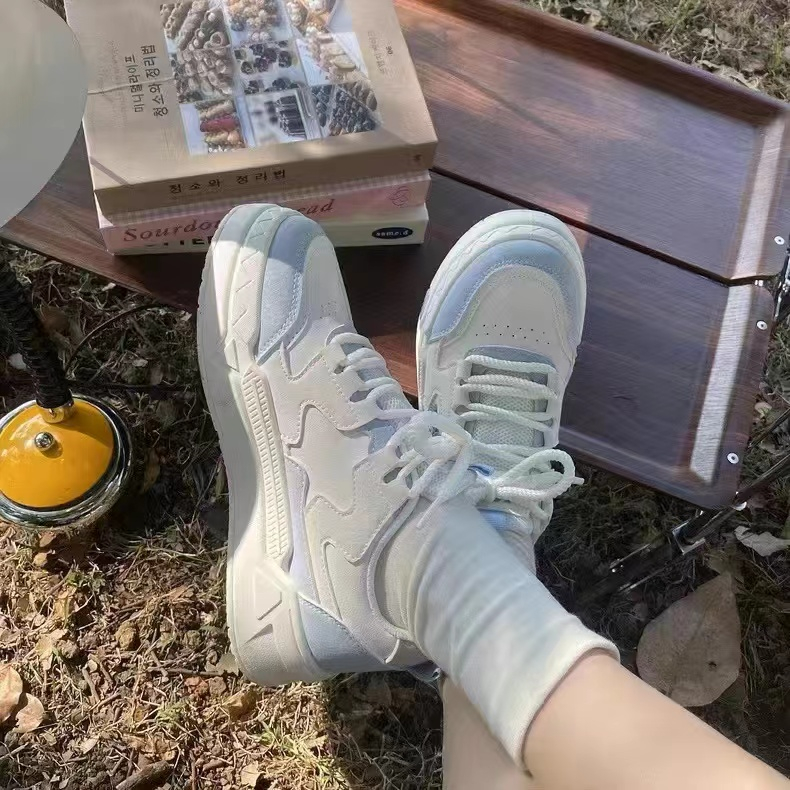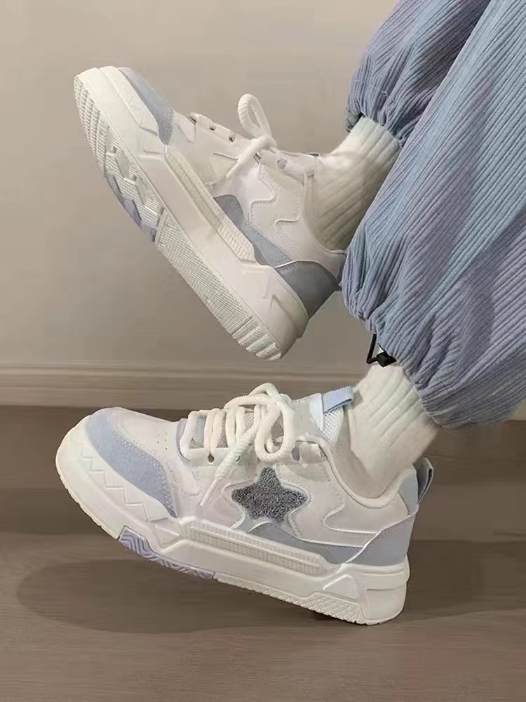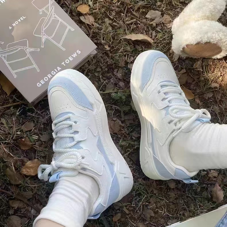 Белая тканевая синяя спортивная обувь на платформе для отдыха, осенняя