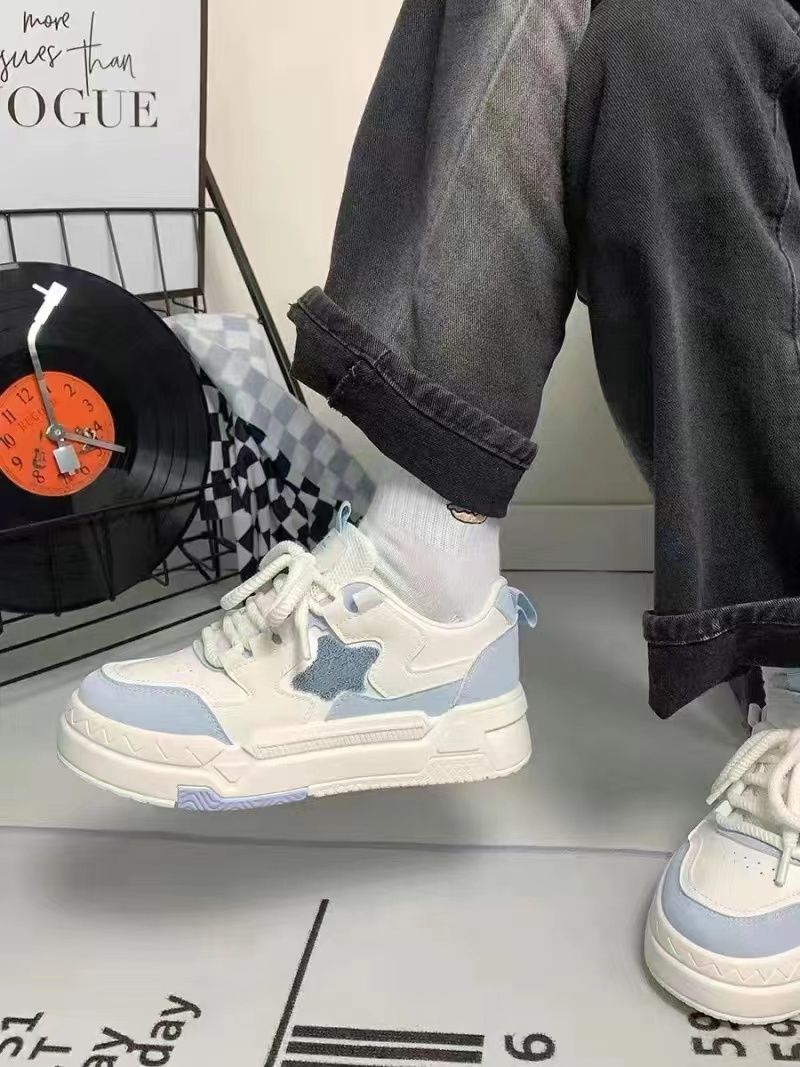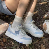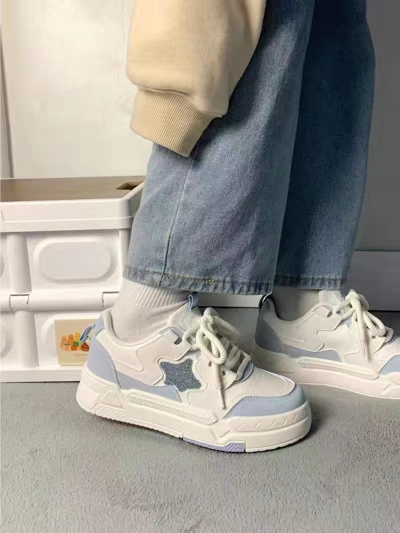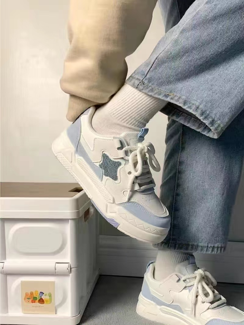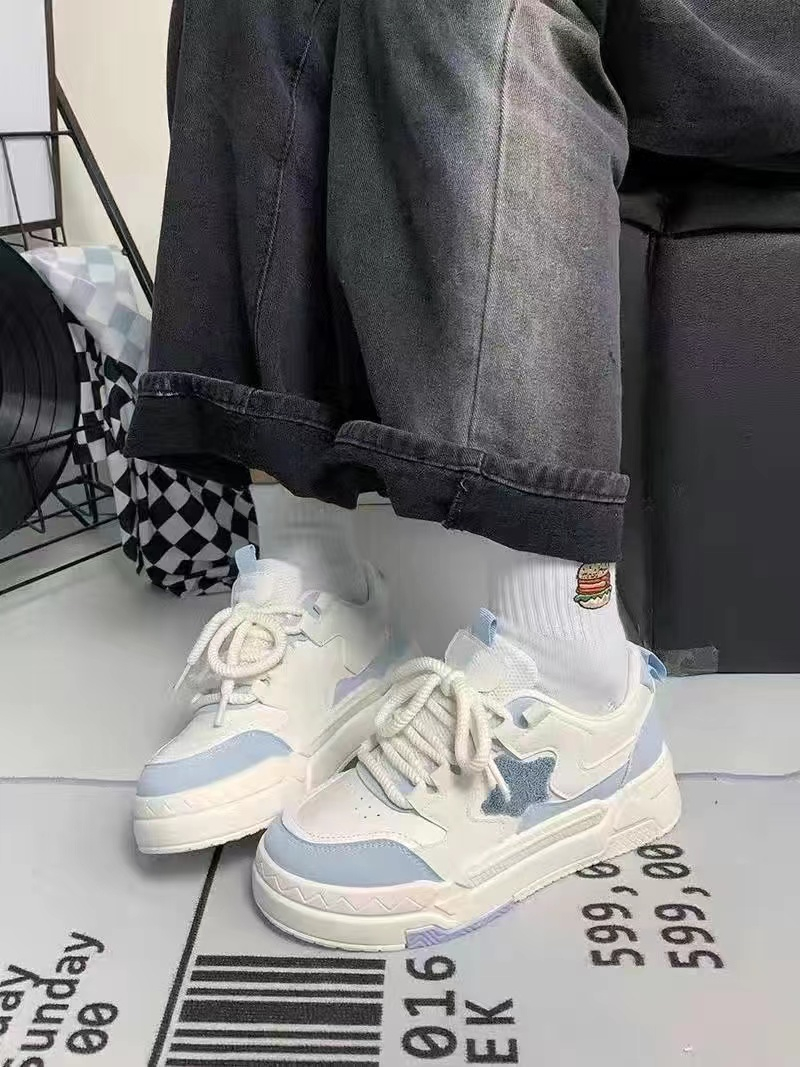 Белая тканевая синяя спортивная обувь на платформе для отдыха, осенняя