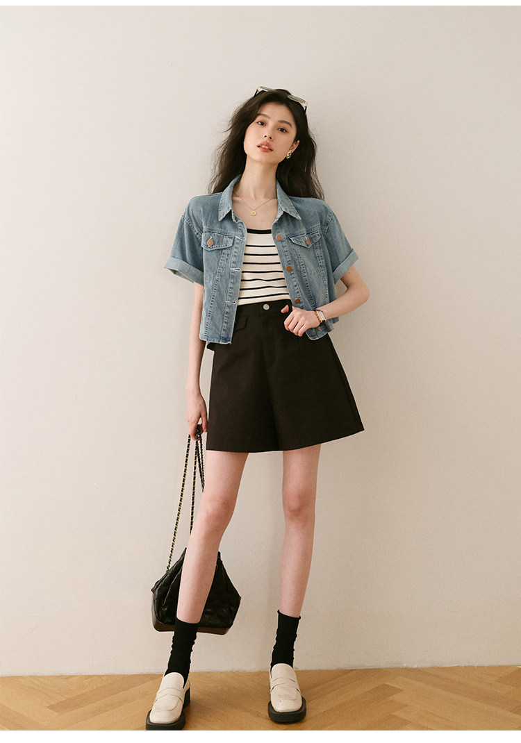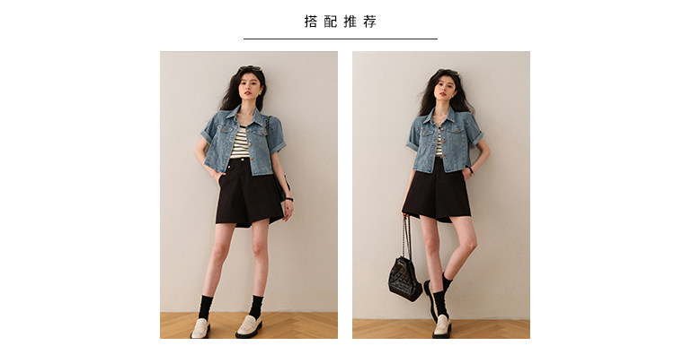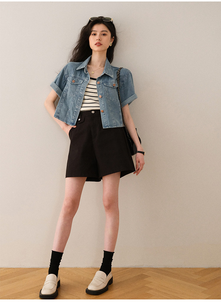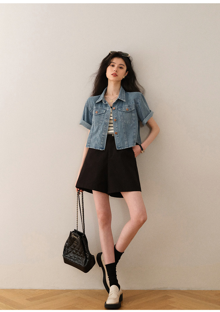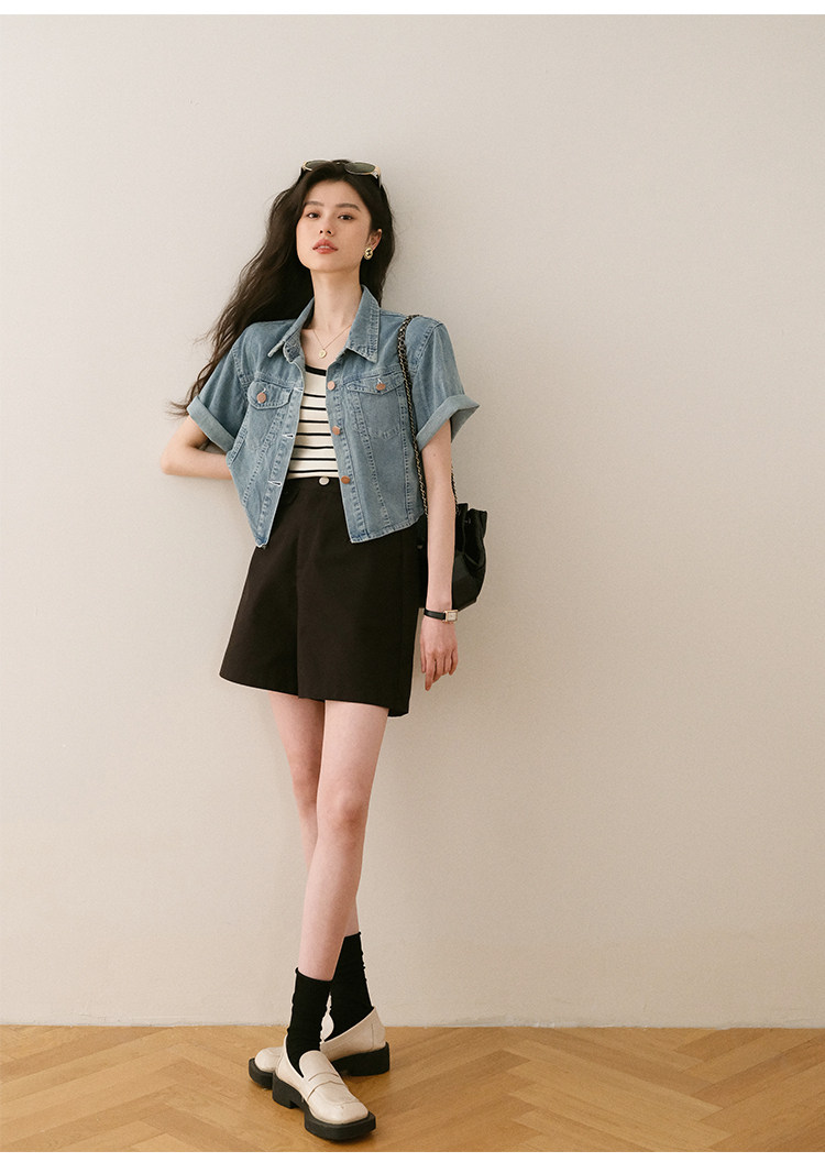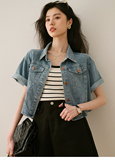 Ретро синяя джинсовая летняя дизайнерская тонкая куртка, тренд сезона, короткий рукав
