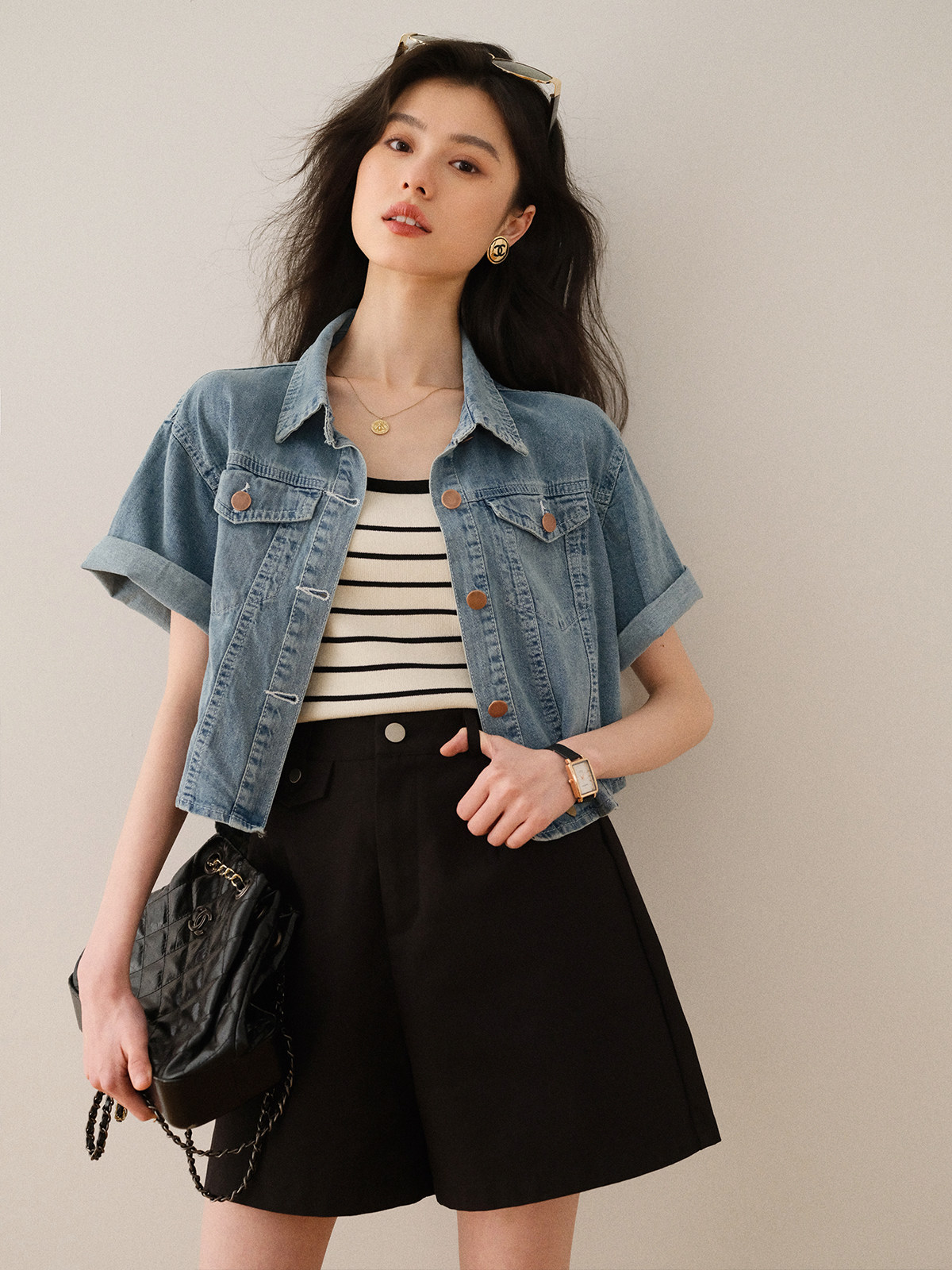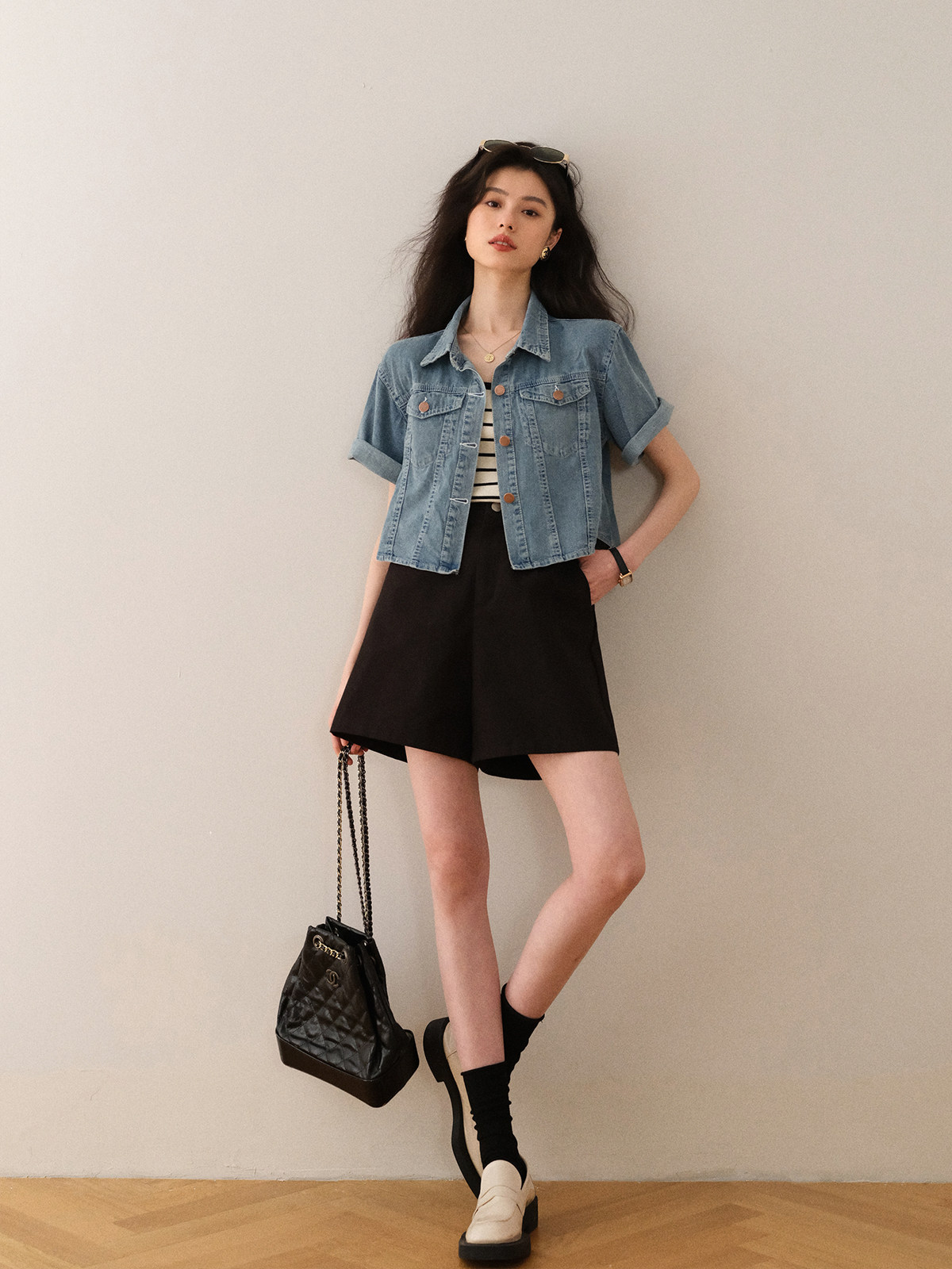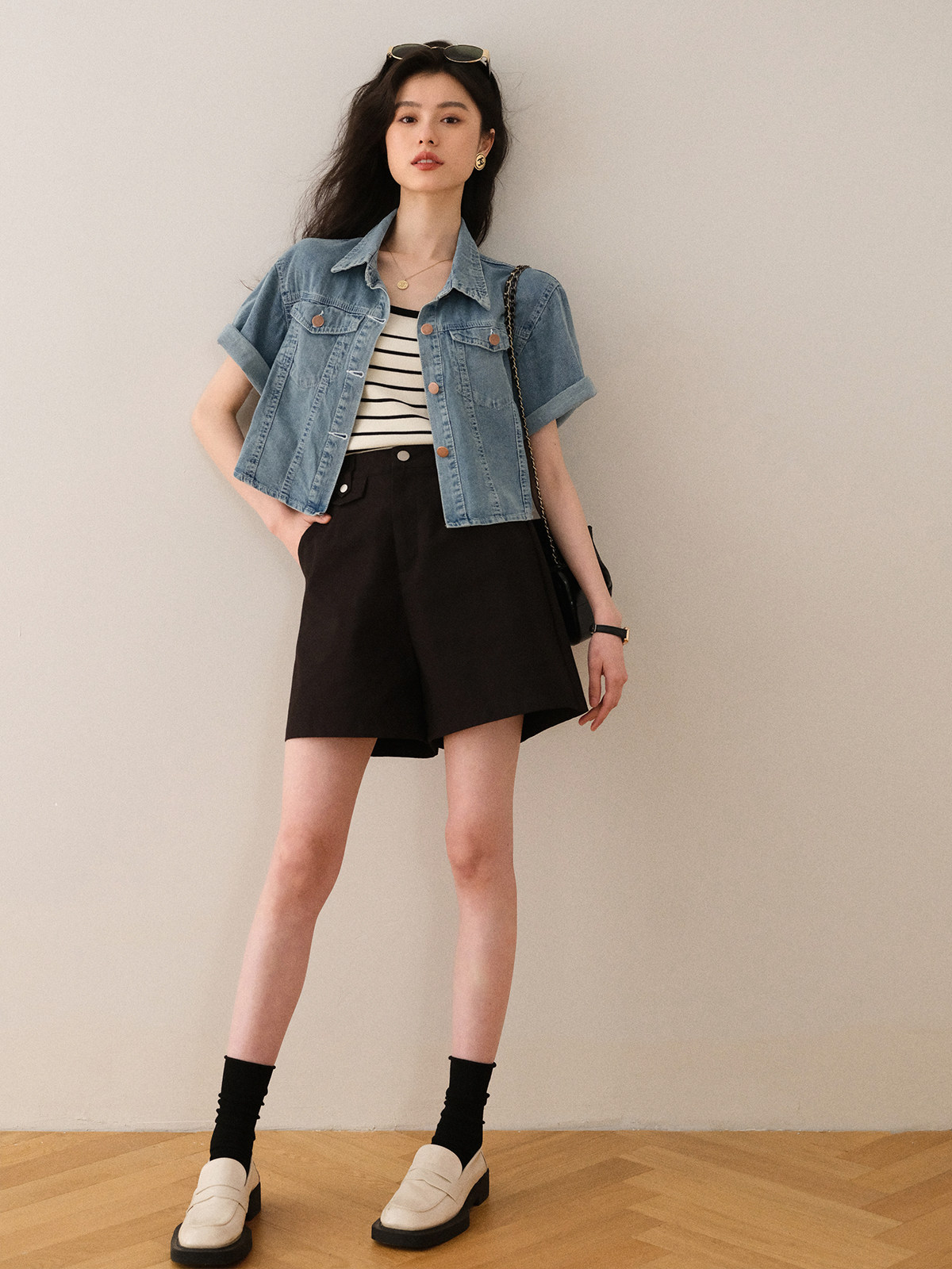 Ретро синяя джинсовая летняя дизайнерская тонкая куртка, тренд сезона, короткий рукав