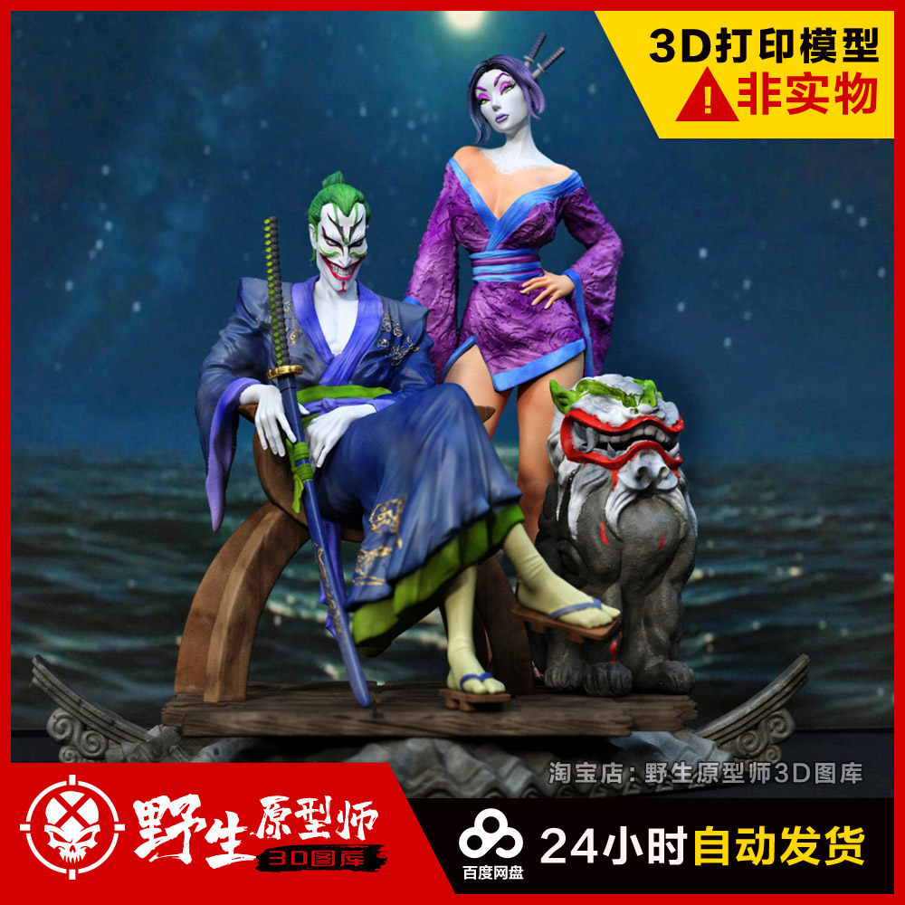 Клоун Joker & Punchline Samurai Версия 3D -печать модель модели рисования STL -ручное материал материал