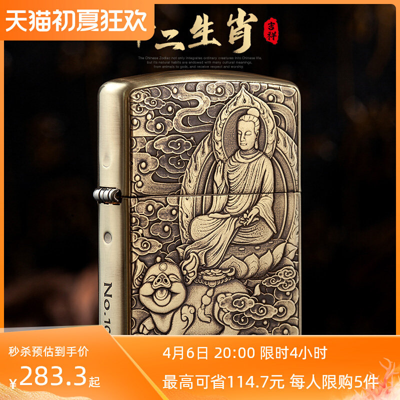 Мужская латунная ветрозащитная зажигалка, китайский гороскоп, подарок на день рождения