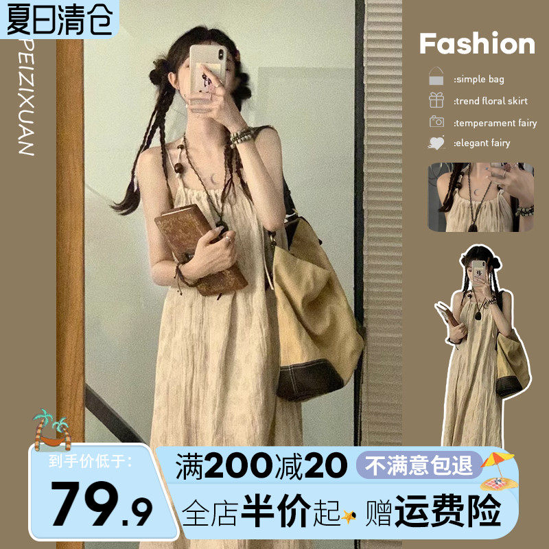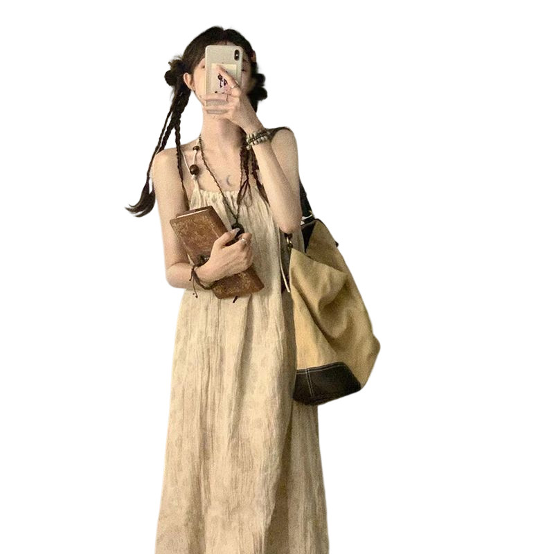 Ретро ремень, летнее платье с рукавами без рукавов, длинная юбка, эффект подтяжки, коллекция 2023, оверсайз, свободный крой, яркий броский стиль