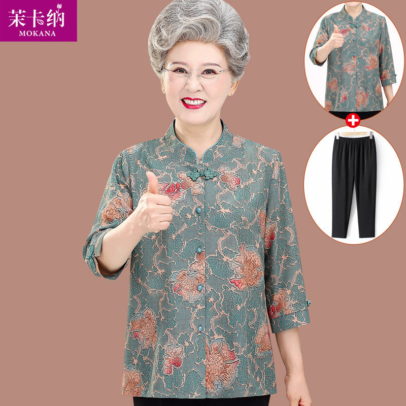 Летняя одежда для пожилых людей, рубашка для матери, летний тонкий комплект на день матери, для среднего возраста