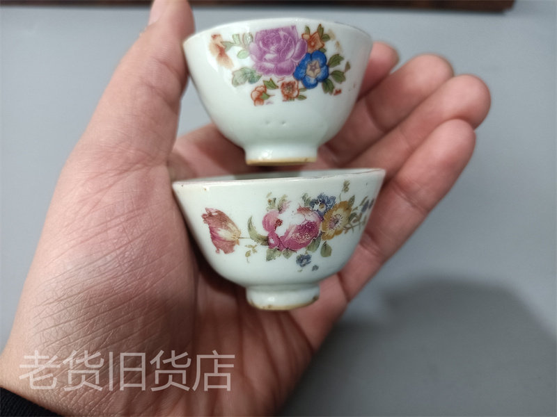 Бао Лао Бао Чжэнь открыл дверь старой Республики Китая розовые пиони цветок маленькие чашки после надписи восьми крупных горных народ.