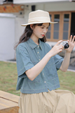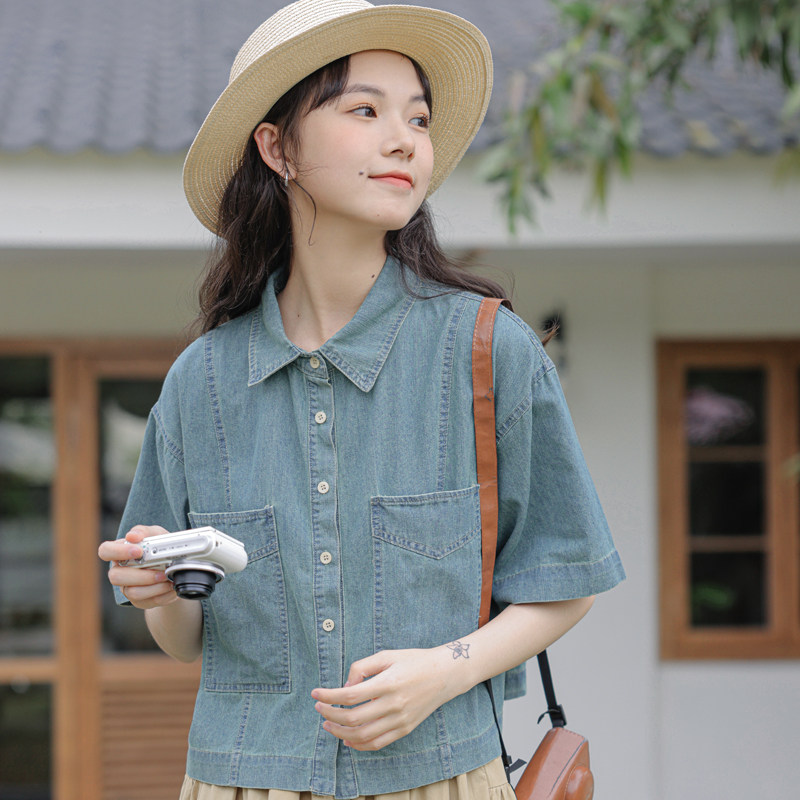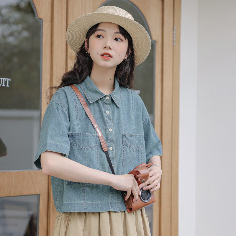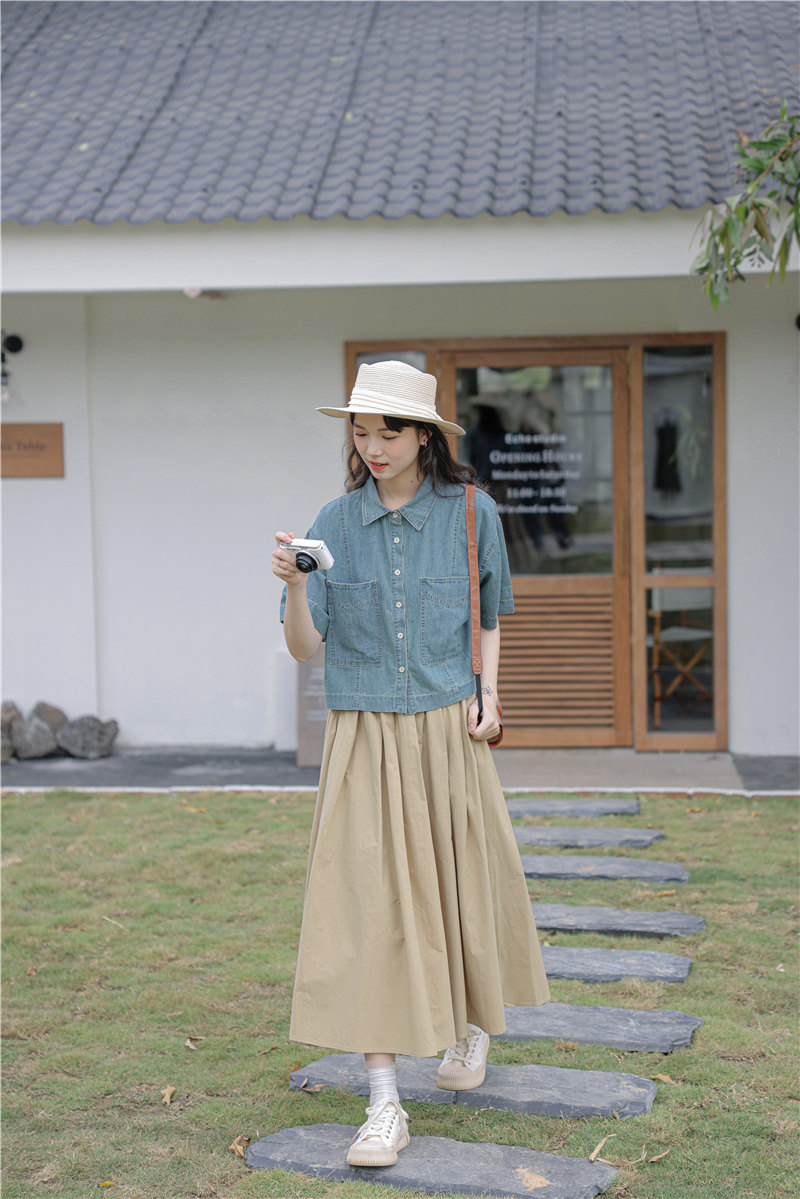 Ретро джинсовая юбка, летняя рубашка, кардиган, оверсайз, свободный крой