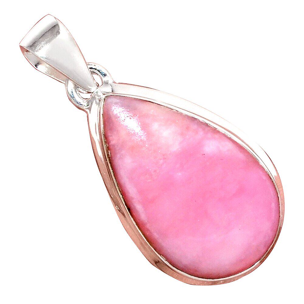 Индийское ручное ручное натуральное розово -белковое каменное подвеска 925 стерлингового серебра, общая длина: 39,3 мм, AP