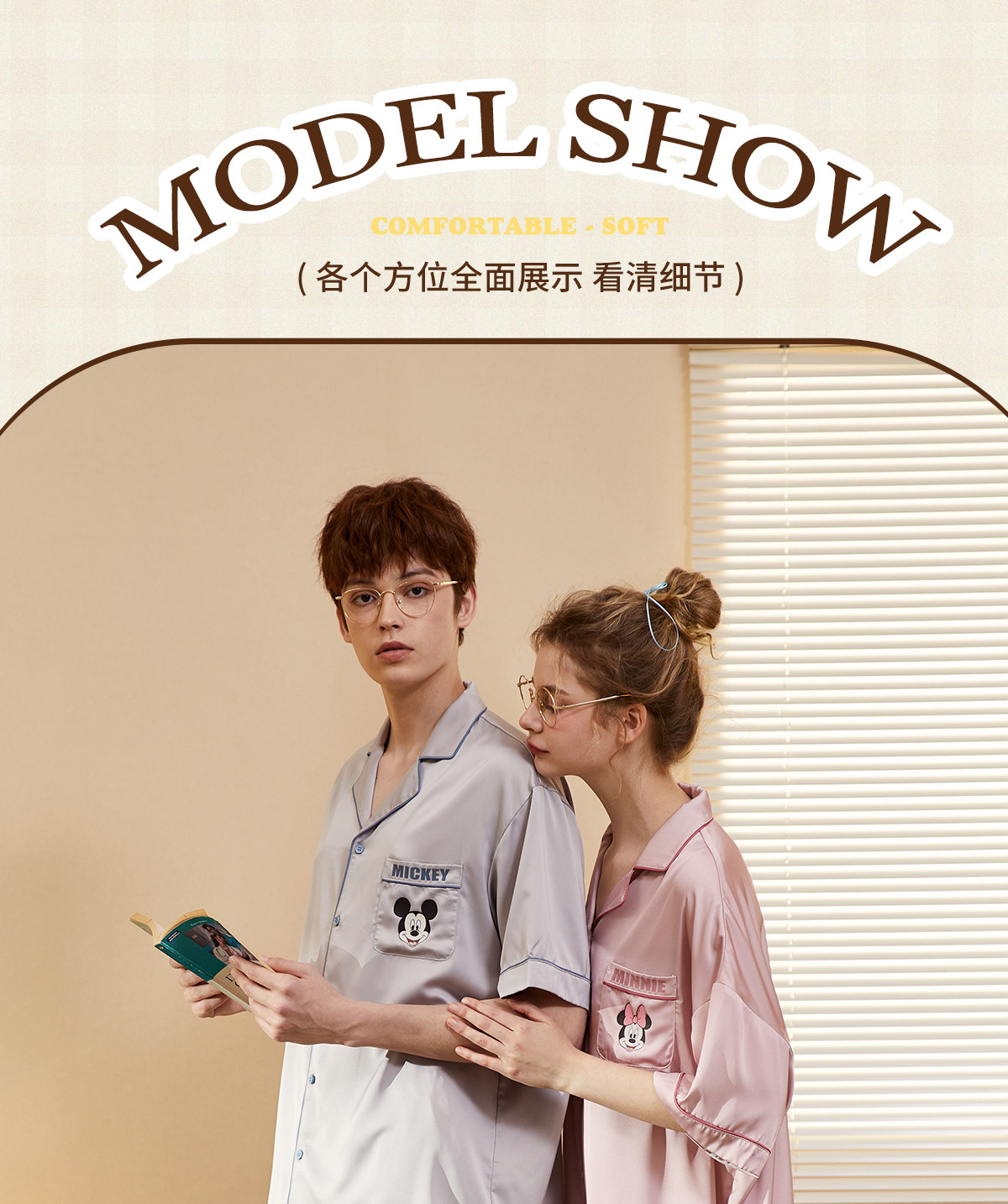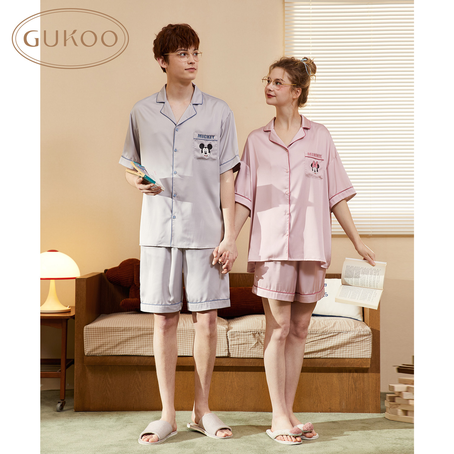Gukoo/果壳 Дисней, однотонная шелковая пижама для влюбленных
